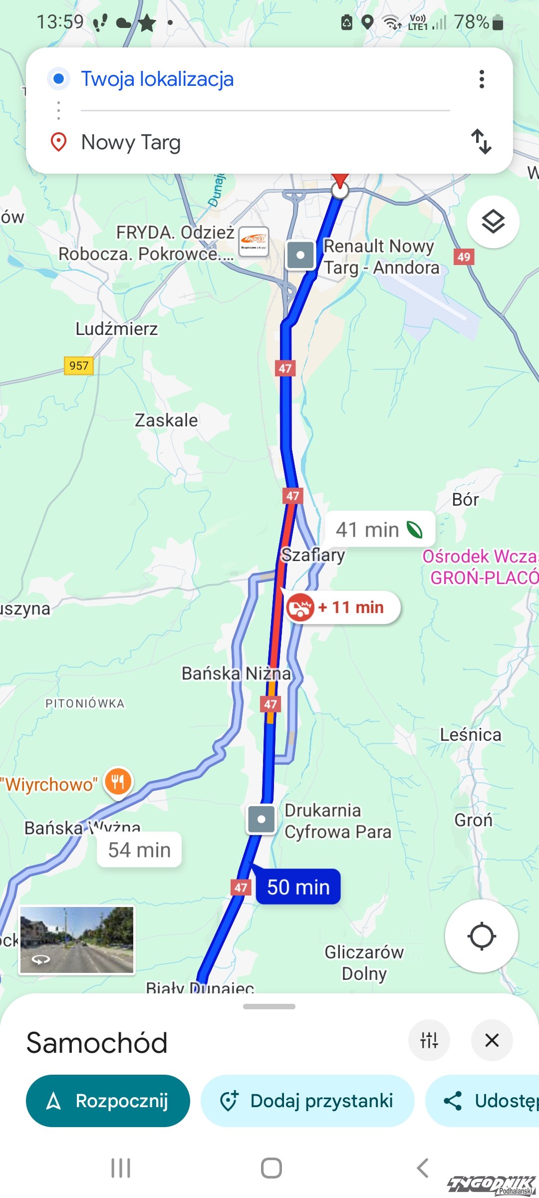 Wypadek w Szaflarach. Korki na zakopiance