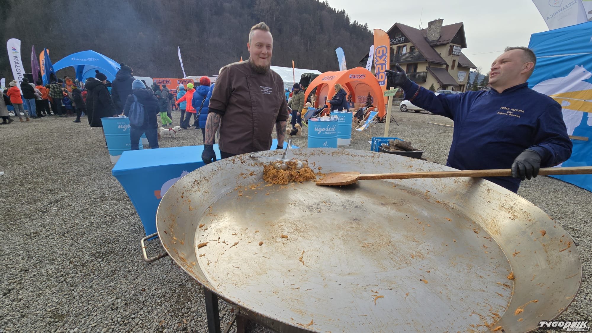 Ta ogromna patelnia o średnicy 175 cm była dziś wypełniona po brzegi bigosem.