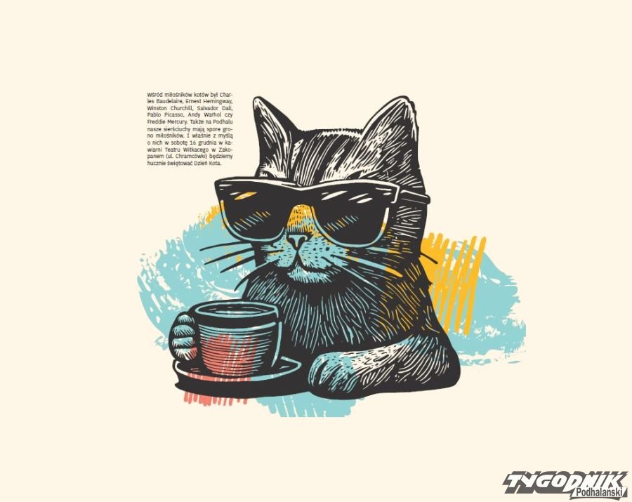 Kawiarniane wnętrze wypełnią koty malowane, ceramiczne i na fotografiach, wielbione w wierszach i poprzez muzykę. Będą też specjalne przysmaki dedykowane wprawdzie ludziom, ale ku czci kotów. Odbędzie się również licytacja na rzecz bezdomnych kotów na Podhalu, w trakcie której do pod młotek pójdą niepowtarzalne artystyczne wyroby o kociej tematyce. Poprowadzi ją Kuba Meglicz. W planach konkursy i inne niespodzianki.