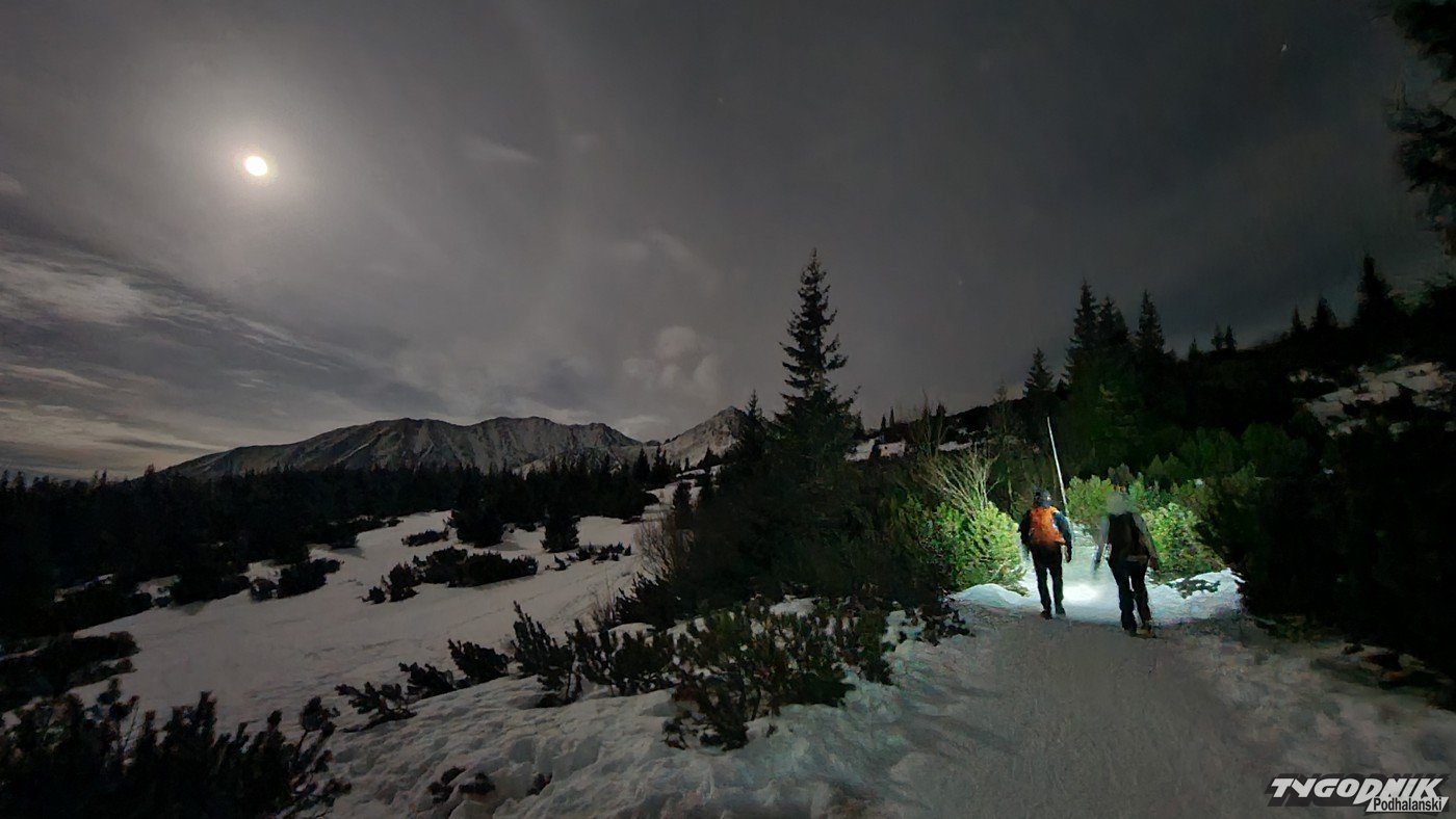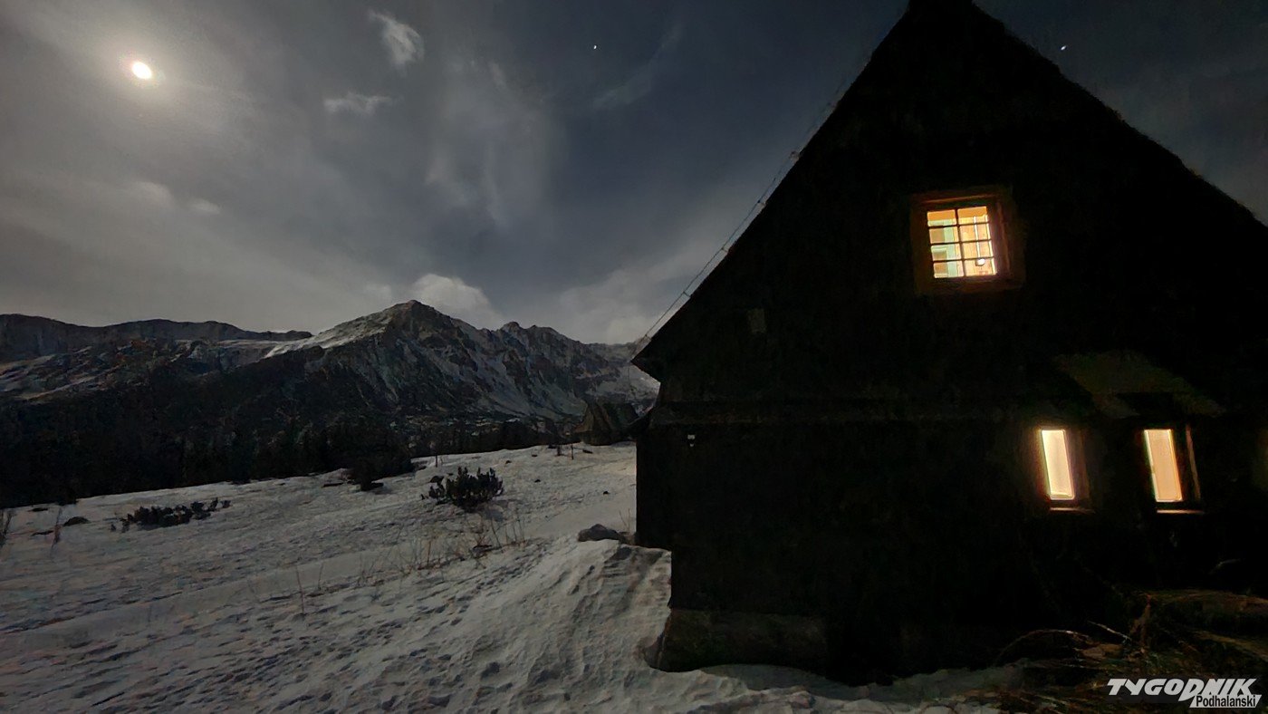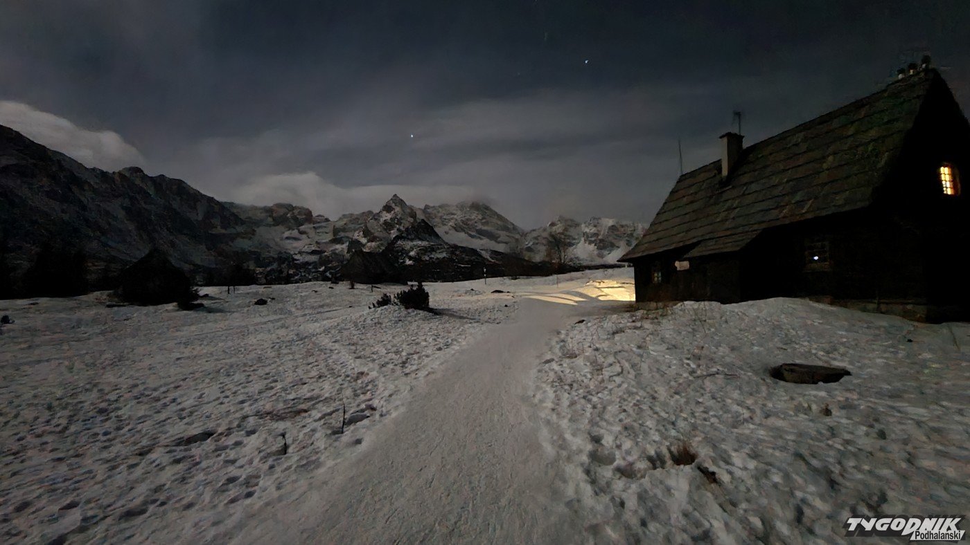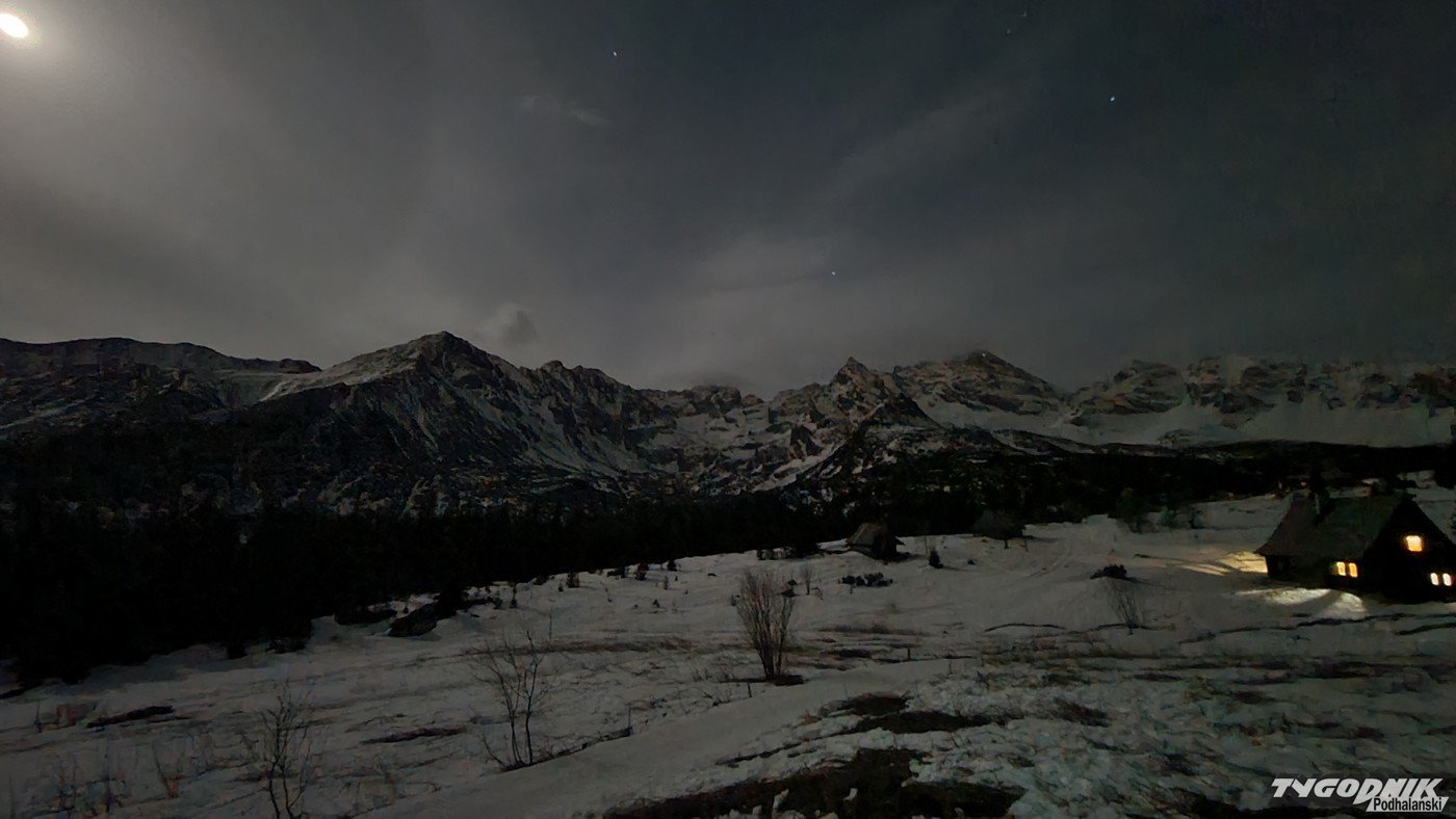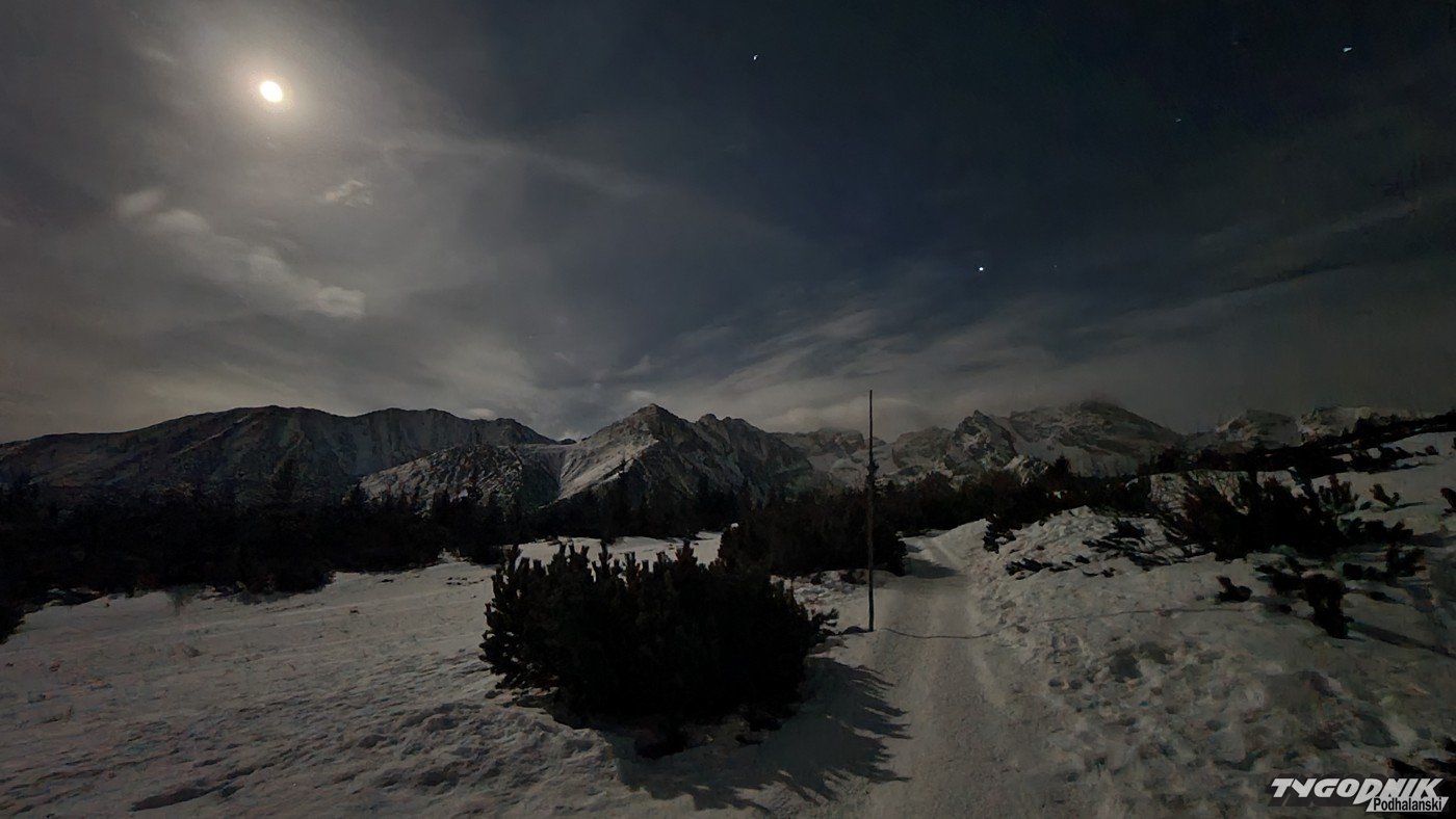 Pełnia Księżyca i piękne widoki na ośnieżone szczyty - tak było minionej nocy na Hali Gąsienicowej.