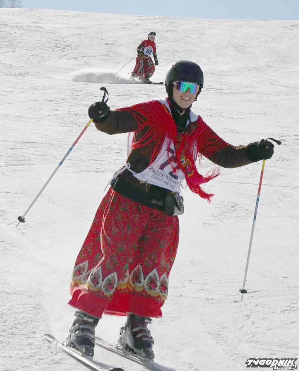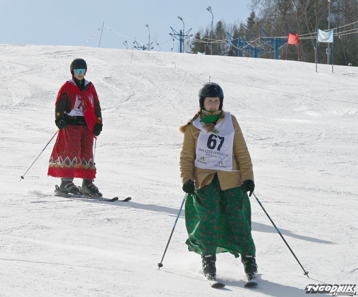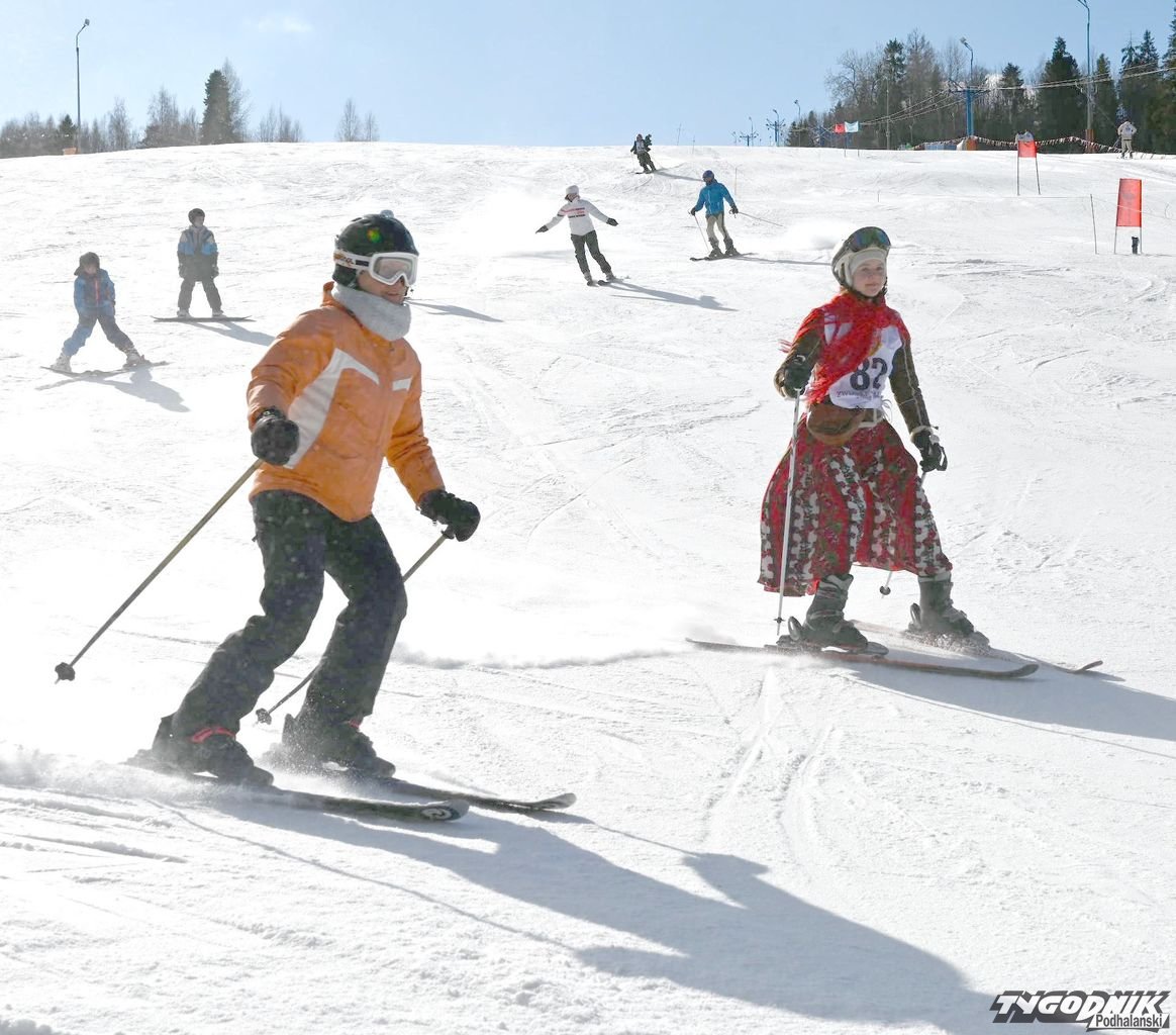 Zawody odbywały się w niedzielę 16 lutego na Wyciągu Narciarskim na nowotarskim Zadziale. Wzięło w nich udział około 80 osób, z różnych oddziałów Związku Podhalan, m.in. z Ochotnicy Górnej i Dolnej, Spytkowic, Klikuszowej, Nowego Targu, Obidzy, Milówki, Rabki-Zdroju, Odrowąża, Poronina, Łopusznej. - Świetna zabawa. Strój góralski nie przeszkadza, wszak przecież o to chodzi, by spódnica furgała - śmiała się po zjeździe Karolina Skupień, jej konkurentką była... siostra. - Zawsze jest gdzieś z tyłu głowy myśl, by być lepszą od Agaty. Może się za rok uda - komentowała Agata Skupień. - A tak w ogóle będziemy ćwiczyć, by za rok obu nam poszło jeszcze lepiej - dodały góralki z Klikuszowej, ale zaznaczyły, że reprezentują nowotarski oddział Związku Podhalan.