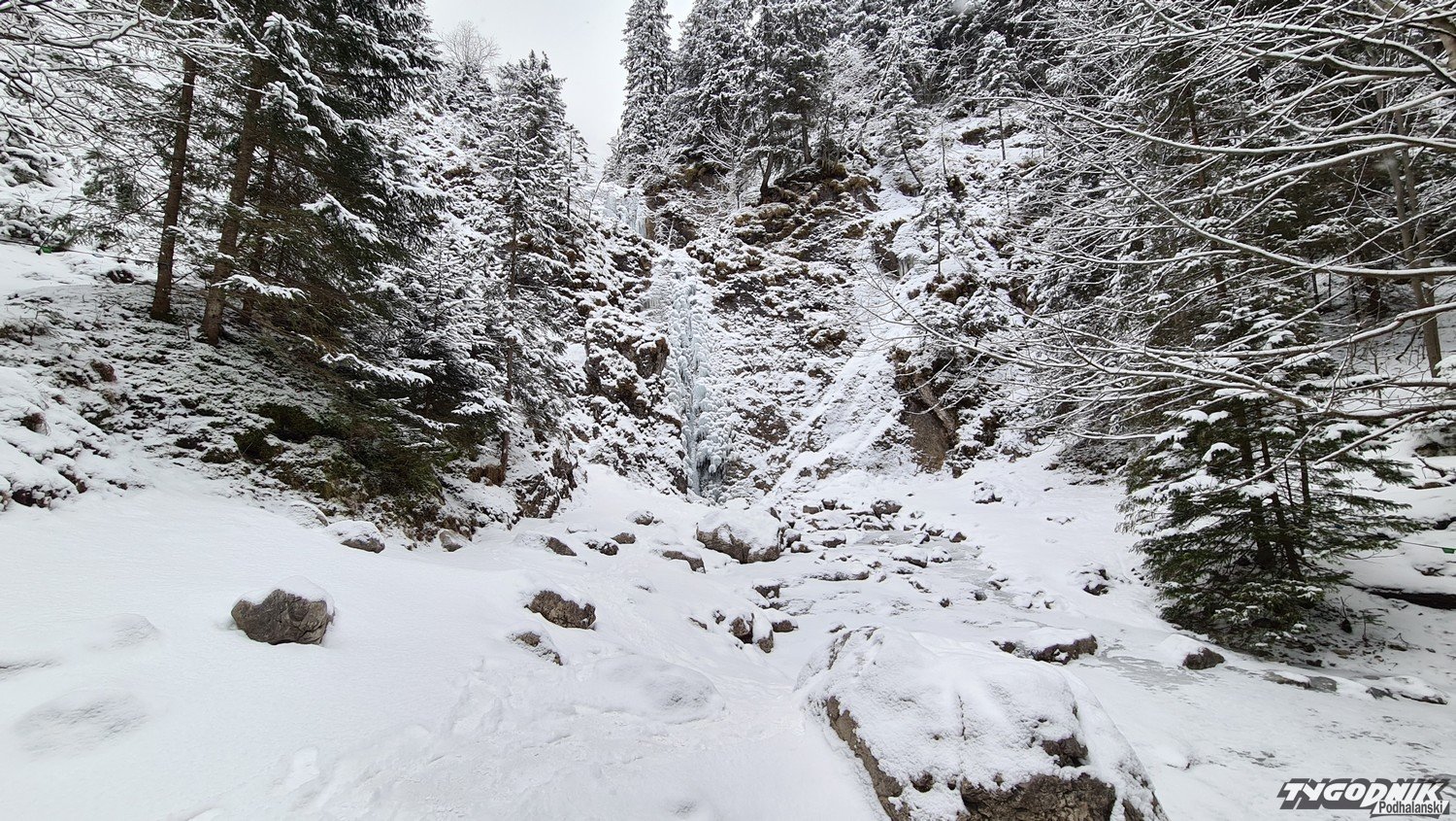 Bardzo niskie temperatury panujące przez całą dobę sprawiły, że wodospad Siklawica zamienił się w lodospad.