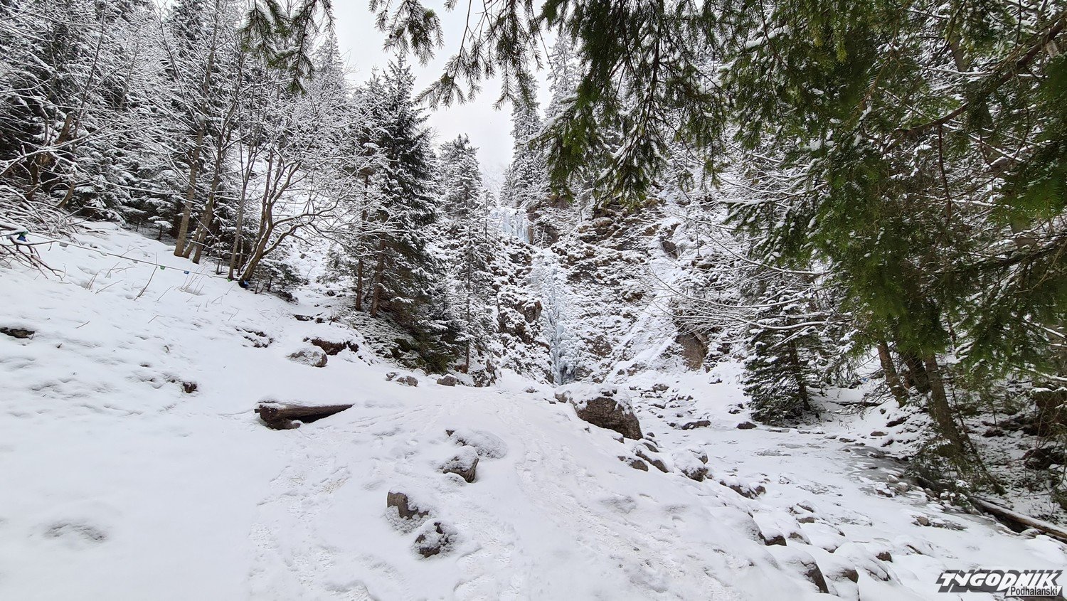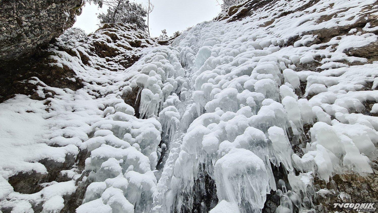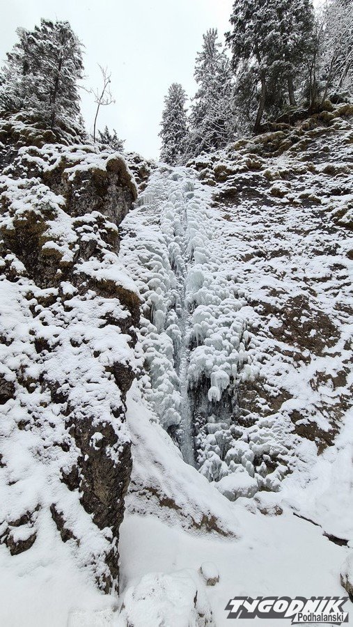 Minionej nocy w Zakopanem było prawie - 15 st. C., a na Kasprowym niemal - 19. W słynnym ostatnio Kotle Litworowym, a więc w biegunie zimna w Polsce, poniżej - 30. Ujemne temperatury utrzymują się przez cały dzień. To sprawiło, że zamarzł wodospad Siklawica w Dolinie Strążyskiej. Trzeba przyznać, że w takiej odsłonie wygląd naprawdę pięknie.