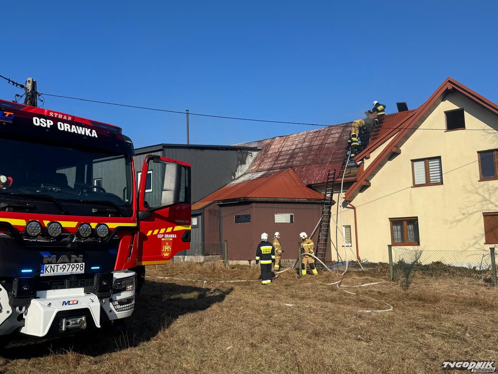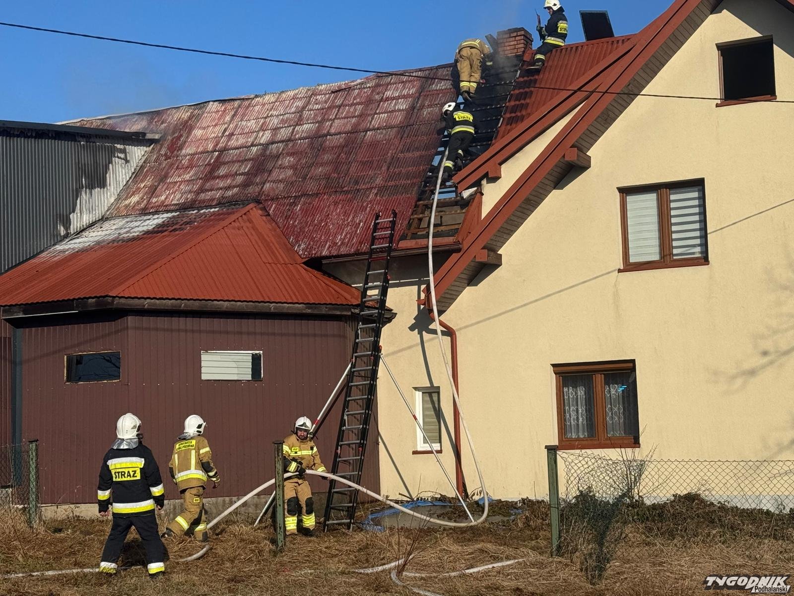 Pożar wybuchł w zabudowaniach gospodarczych - stolarni. Płomienie pojawiły się na poddaszu. Na miejscu, w akcji gaśniczej uczestniczy kilkanaście zastępów strażackich. Z uwagi na to, ze do zdarzenia doszło w sąsiedztwie drogi krajowej - ruch "siódemką" jest utrudniony - odbywa się wahadłowo. Strażakom już udało się opanować sytuację - trwa dogaszanie.