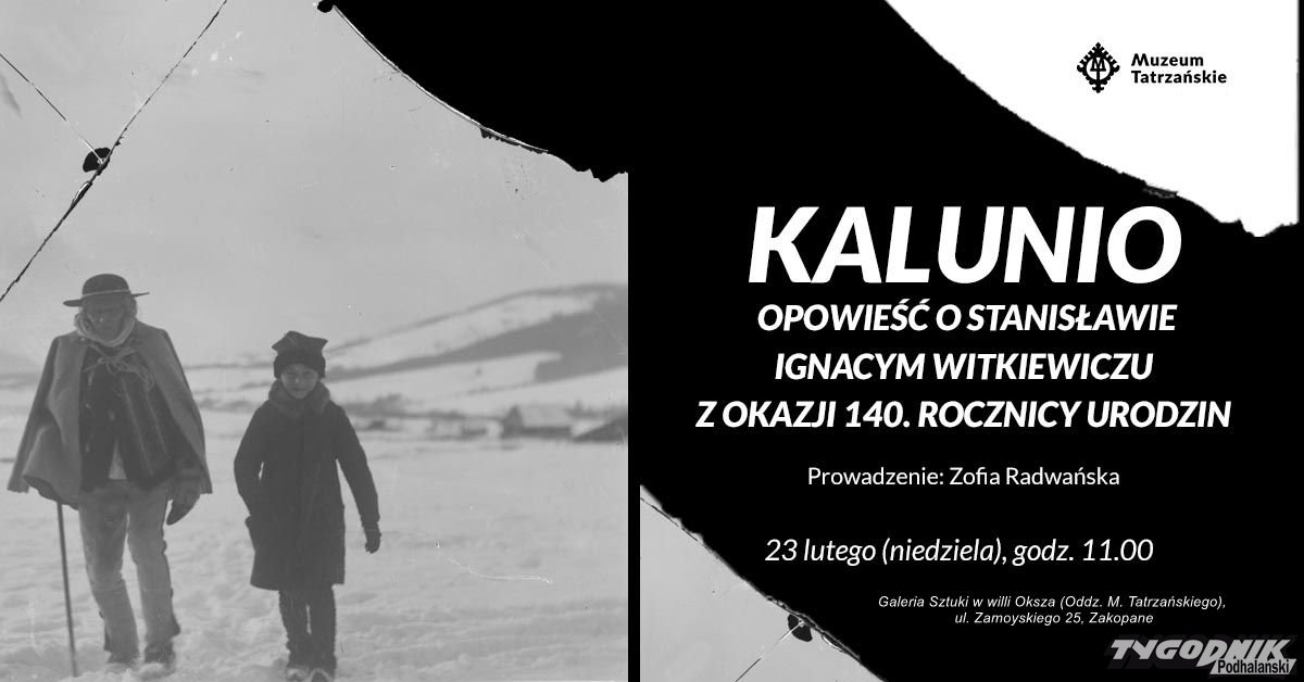 Okazją będzie spotkanie "Kalunio - opowieść o Stanisławie Ignacym Witkiewiczu z okazji 140. rocznicy urodzin", na które zaprasza Muzeum Tatrzańskie. Będzie to opowieść o dzieciństwie i młodości Stanisława Ignacego Witkiewicza, przez rodzinę nazywanego „Kaluniem”. W zaproszeniu czytamy: "Opowiemy o wyjątkowym chrzcie z niezwykłymi chrzestnymi. Pokażemy chłopca ciekawego świata, o wielu pasjach. To wszystko we wnętrzu willi, do której przychodził, jak jeszcze była budowana, a obecnie znajduje się w niej sala poświęcona tylko artyście".