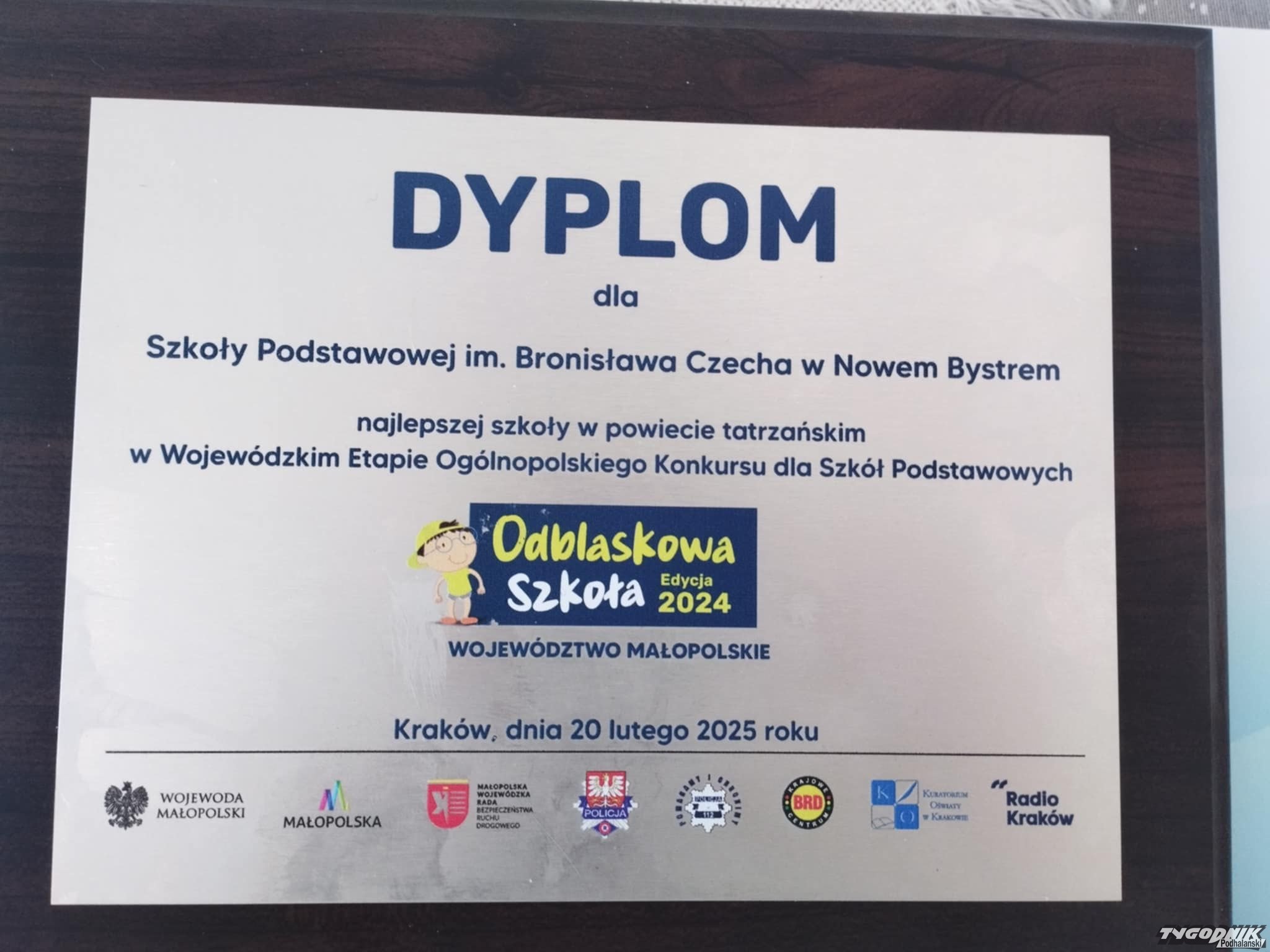Szkoła Podstawowa w Nowem Bystrem zdobyła pierwsze miejsce w powiecie i jej delegacja pojechała na wielką galę do Krakowa.