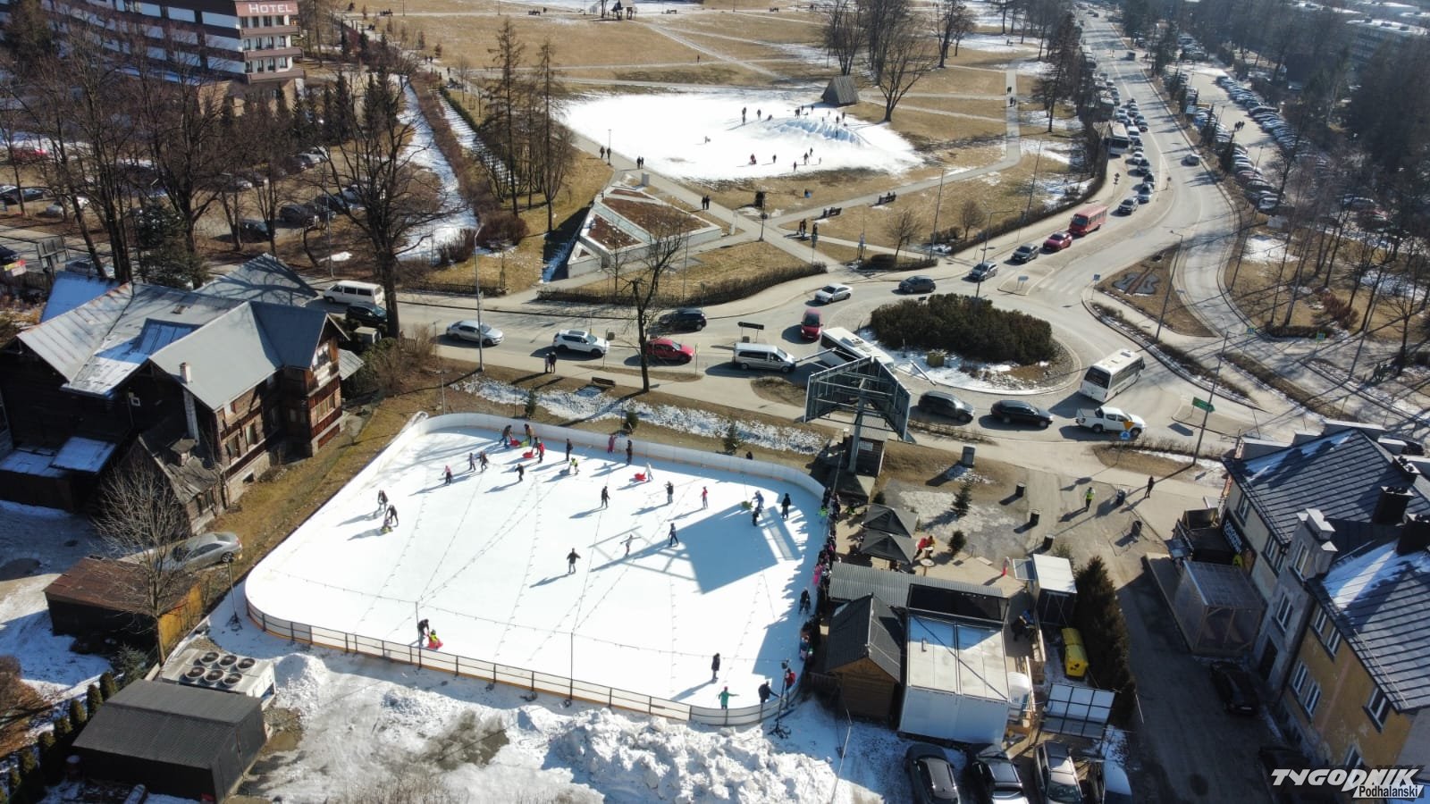 W styczniu śnieg leżał tylko w pierwszej części miesiąca. Później przyszedł halny i wszystko stopniało. W lutym mieliśmy praktycznie symboliczne opady śniegu, długo utrzymywał się za to solidny mróz. Teraz w Zakopanem śniegu nie ma wcale. Pozostał on tylko na sztucznie usypanej na Równi Krupowej górki dla saneczkarzy i na stokach narciarskich.