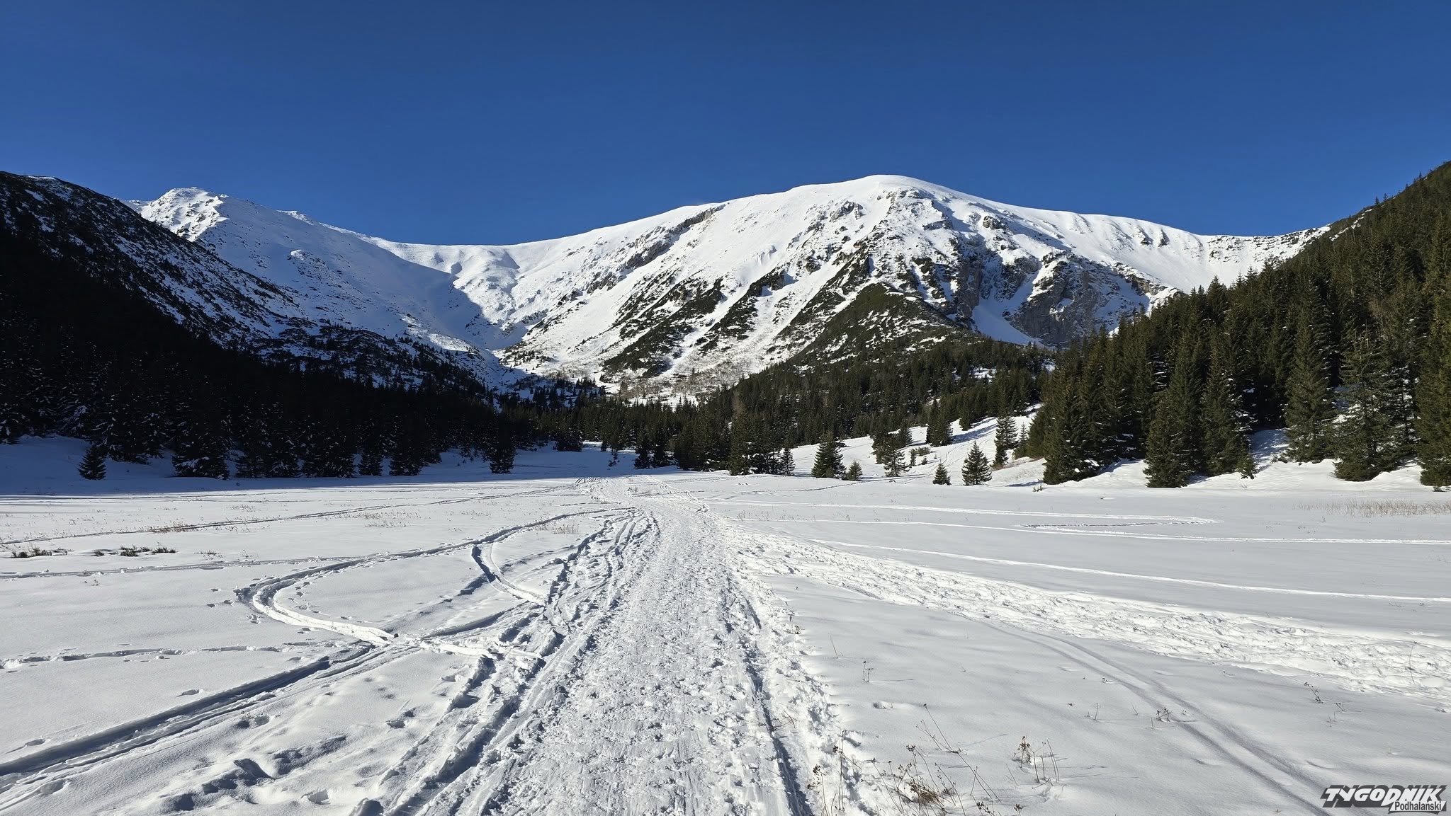 Śnieg, granatowe niebo, słońce i pustki na szlaku - tak dziś rano było na Hali Kondratowej.
