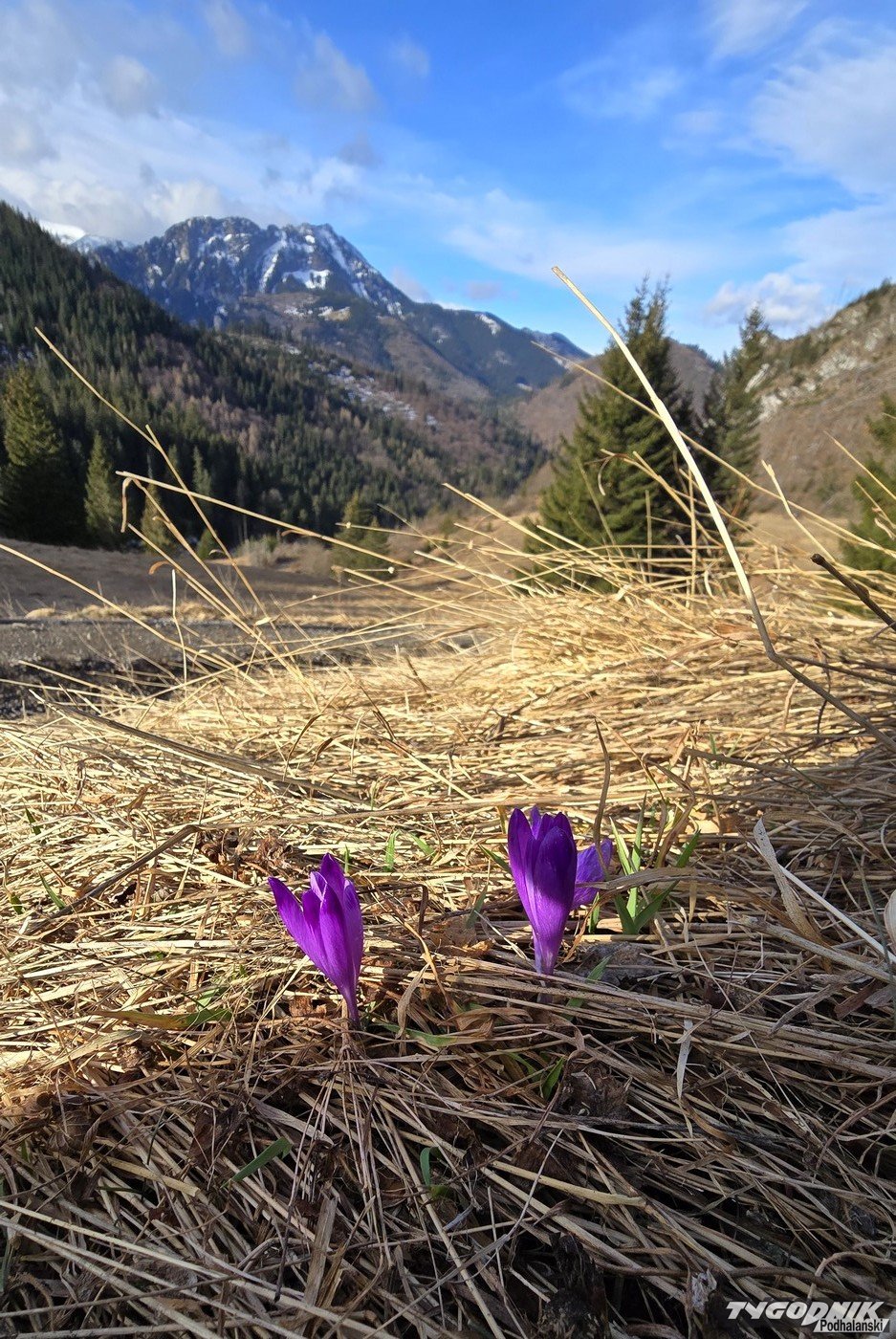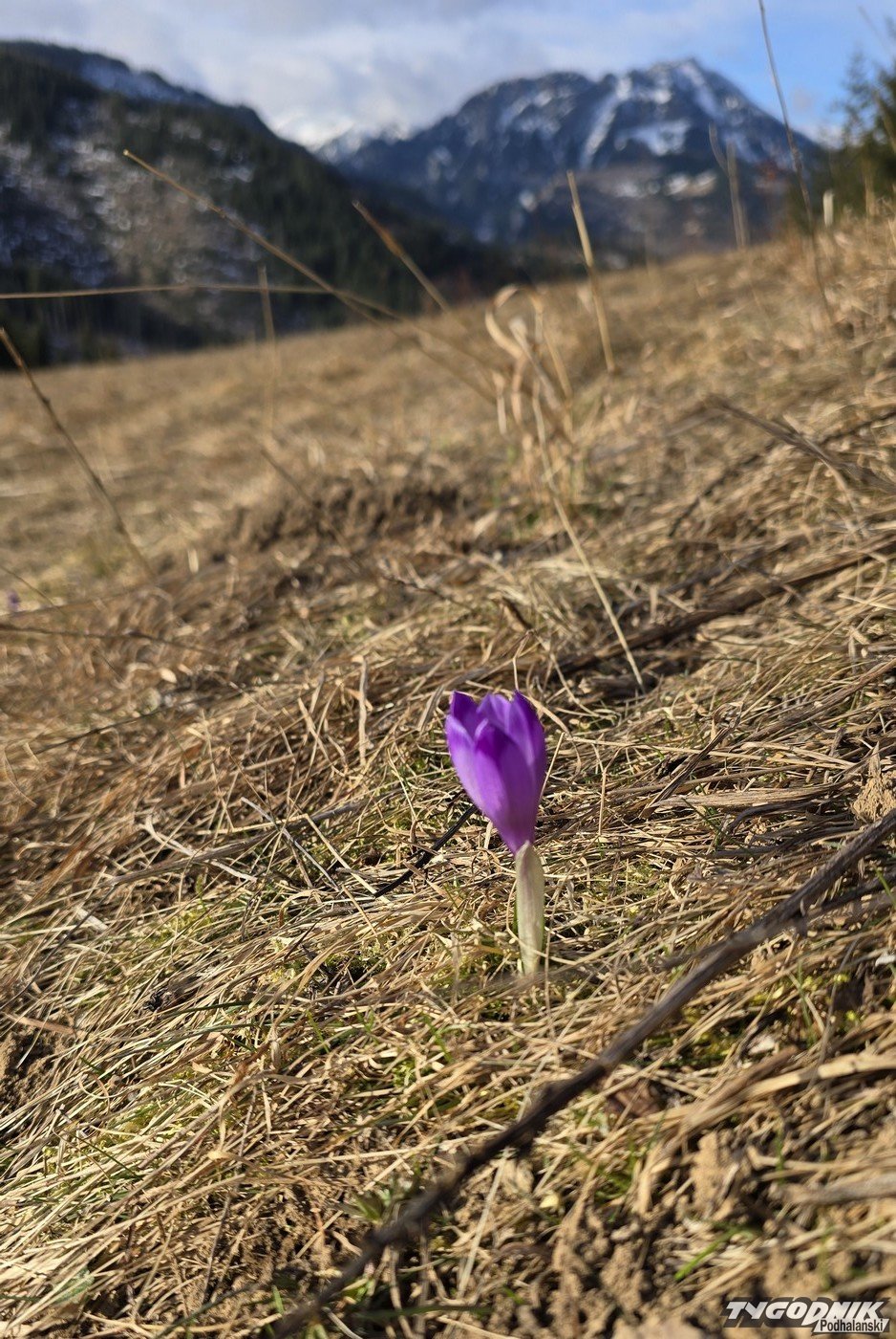 Pokazywaliśmy już zdjęcia krokusów na Kalatówkach. Dziś sfotografowaliśmy kilka tych kwiatów na Przysłopie Miętusim. To jednak na razie tylko pojedyncze sztuki. Na prawdziwy wysyp tych kwiatów musimy poczekać, szczególnie biorąc uwagę prognozy pogody. Zapowiadane są opady deszczu, a wysoko w Tatrach śniegu. W sobotni poranek śnieg może też spaść niżej i na pewien czas przykryć biała warstwą również polany.