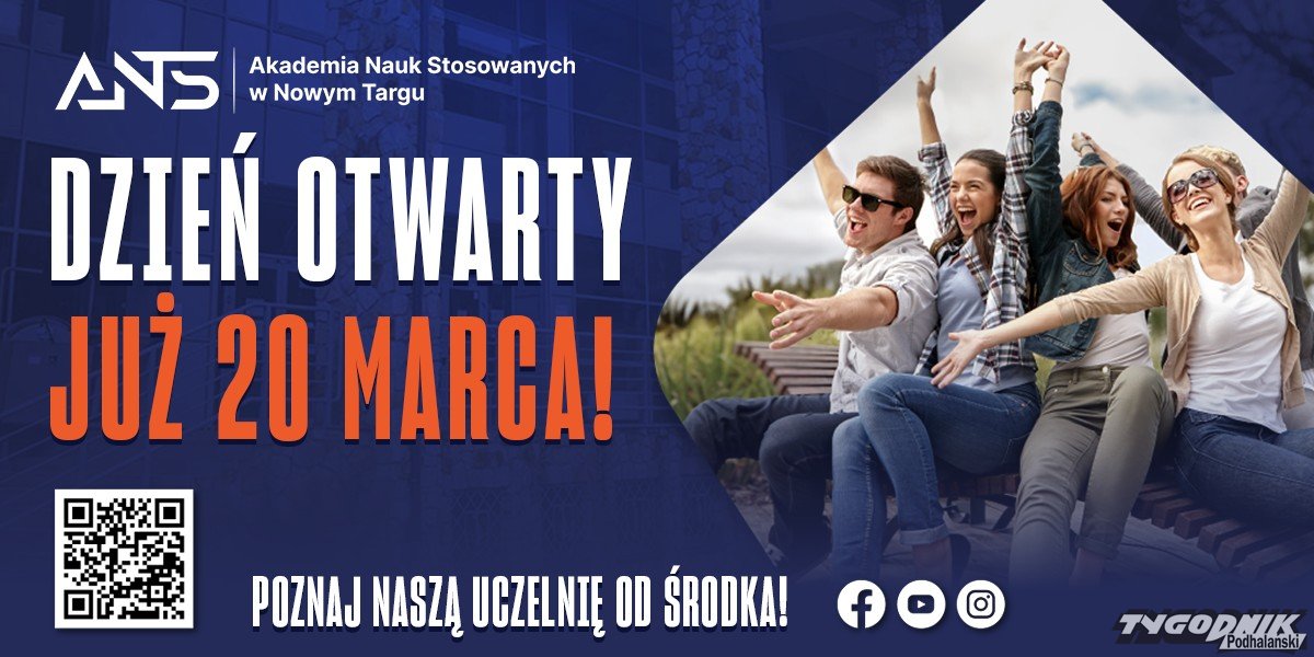 20 marca Akademia Nauk Stosowanych w Nowym Targu zaprasza na Dzień Otwarty - wydarzenie, które umożliwi zapoznanie się z ofertą edukacyjną uczelni, rozmowę z wykładowcami oraz poznanie nowoczesnej infrastruktury akademickiej.