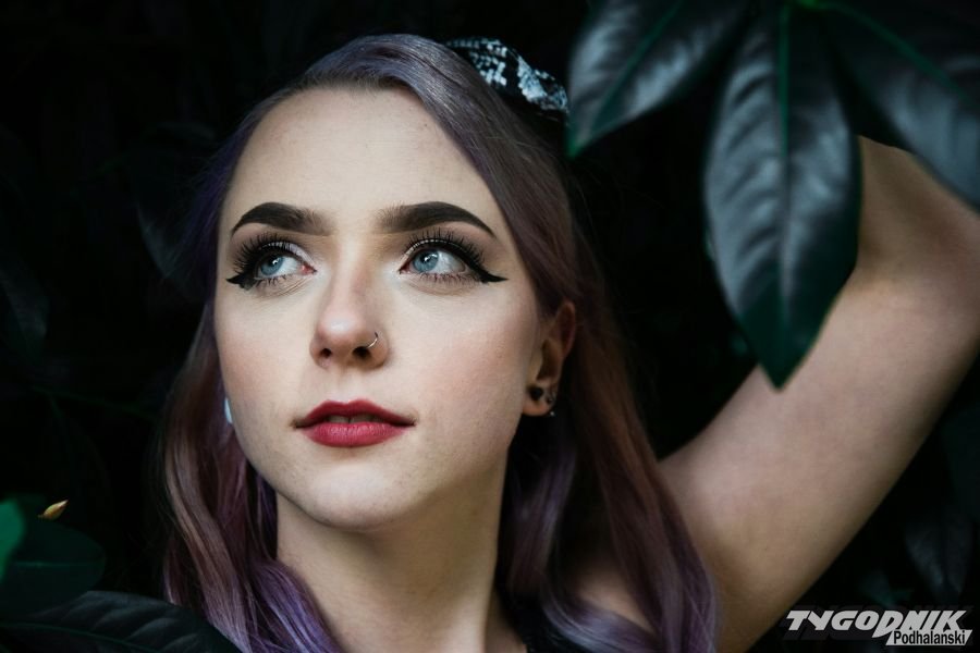 - Rockowy styl – matowe usta w ciemnym kolorze i dobrze zaznaczone kontury twarzy.