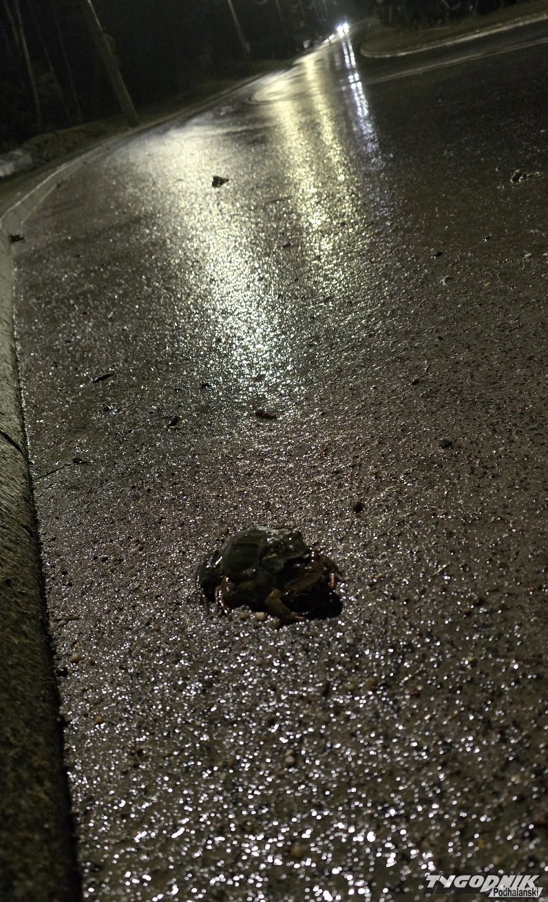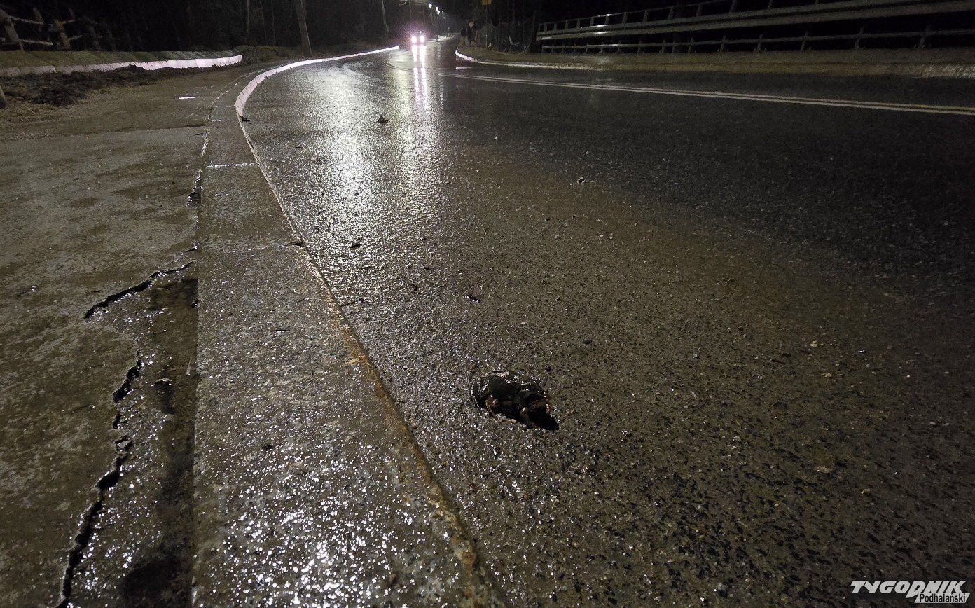 Zaczęły się żabie gody. Na Jaszczurówce w Zakopanem płazy próbują przedostać się przez ruchliwą jezdnię.