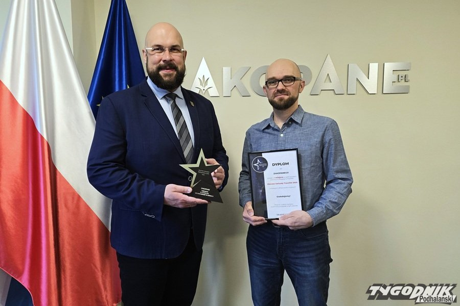 Burmistrz Zakopanego odebrał statuetkę dla naszego miasta za zajęcie pierwszego miejsca w rankingu Zimowe Gwiazdy Travelist 2025.