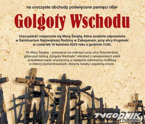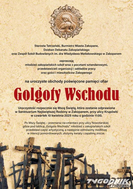 W Zakopanem w czwartek lokalna społeczność odda hołd ofiarom Golgoty Wschodu.