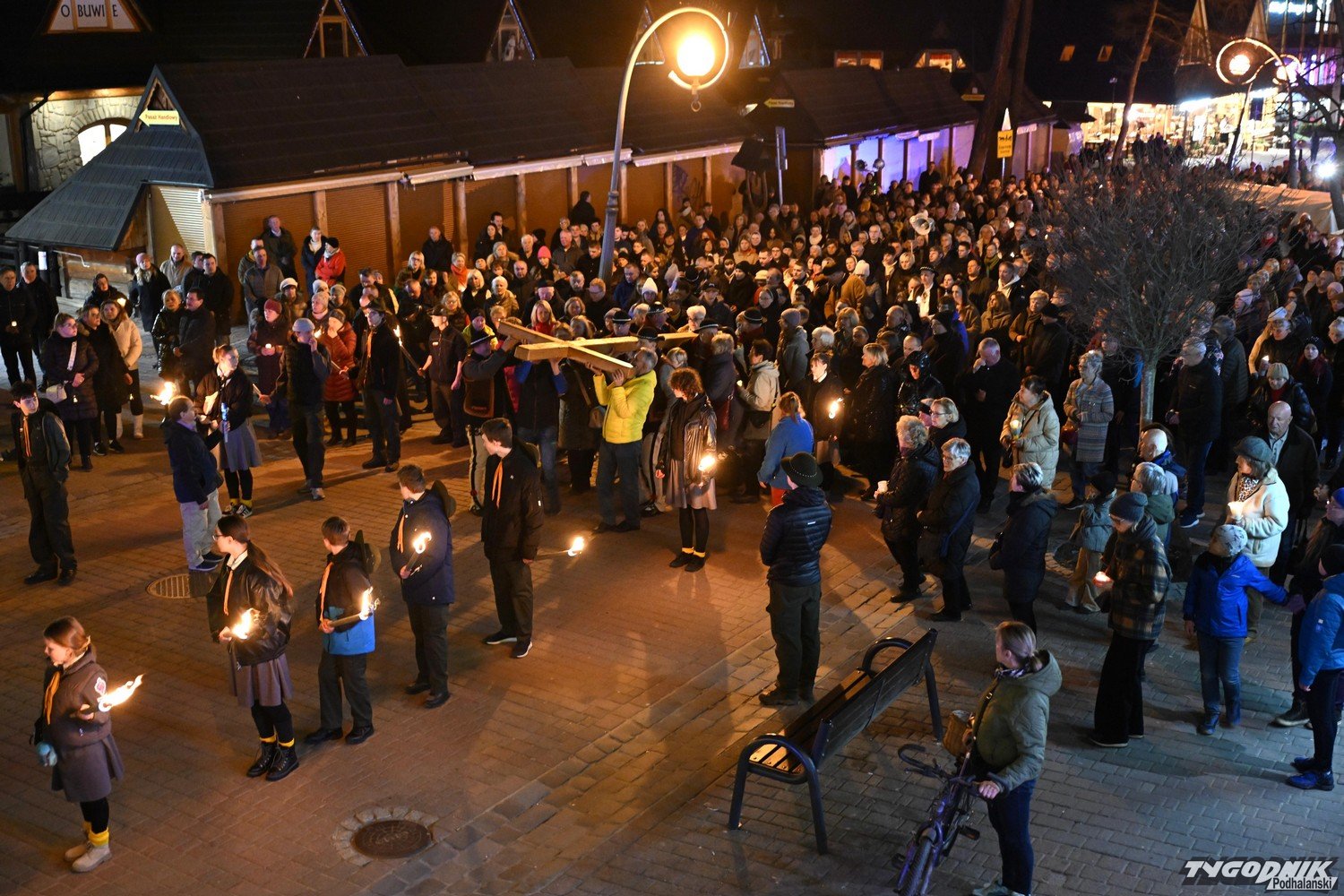 Tradycyjnie już Droga Krzyżowa rozpoczęła się po wieczornej Mszy Świętej w Sanktuarium Najświętszej Rodziny na Krupówkach. Setki wiernych przeszły przez deptak i ul. Zamoyskiego do Kościoła św. Krzyża. Krzyż nieśli m. in. przedstawiciele parafii na Harendzie czy wierni z Kościeliska.