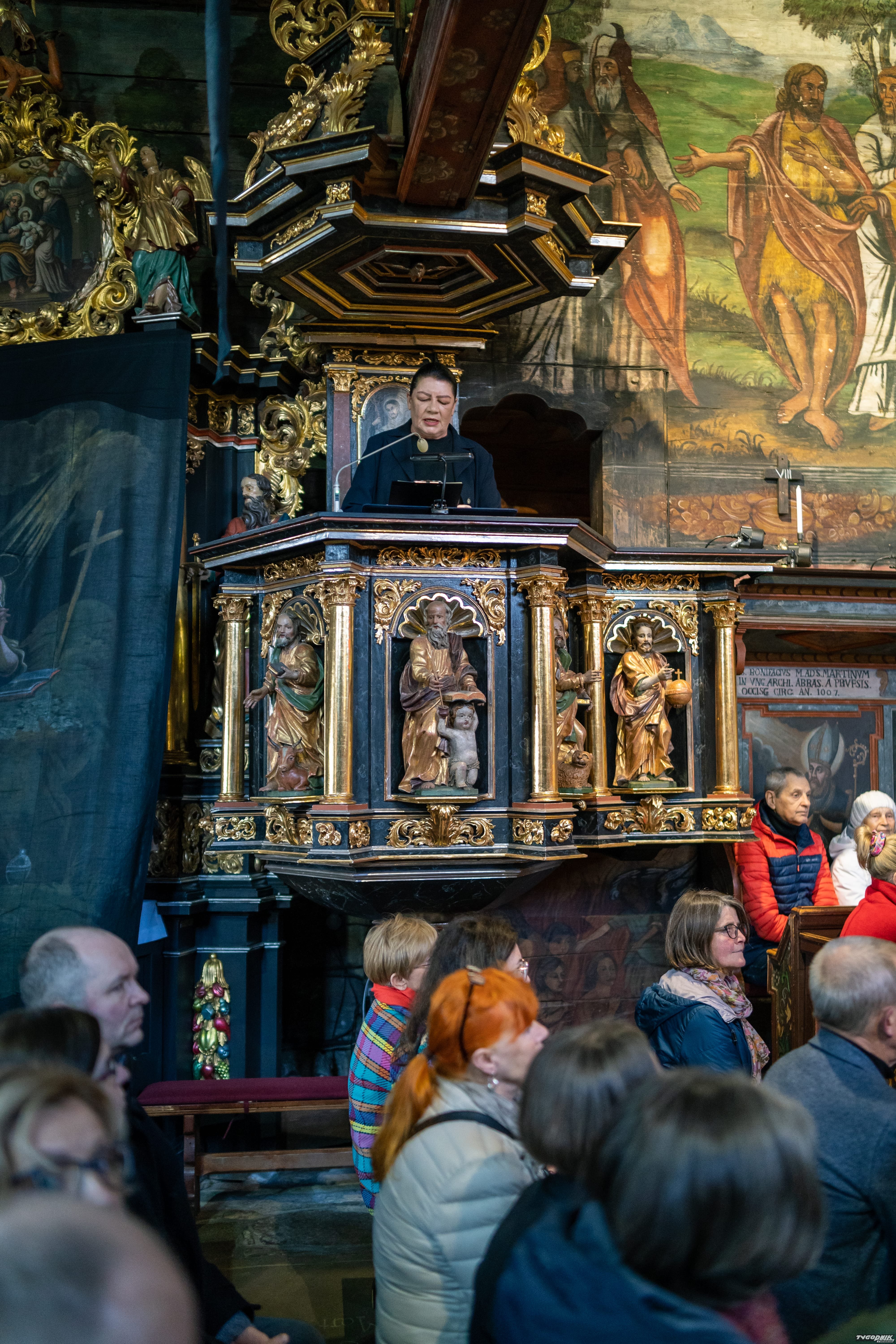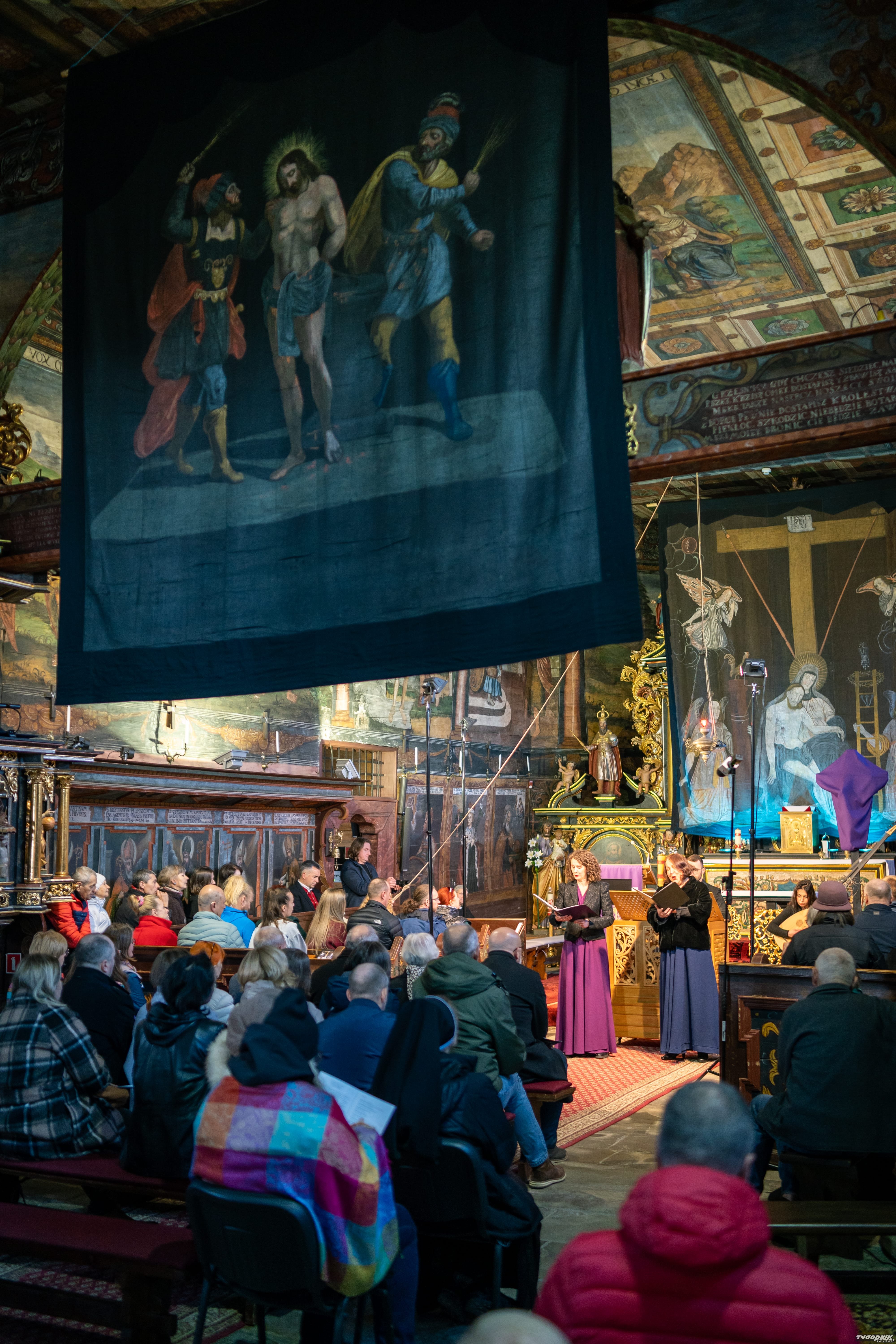 Wybrana na ten szczególny dzień muzyka wraz ze słowem znakomicie współgrała z wnętrzem kościoła w Orawce, gdzie jej przeżywanie podczas kontemplowania wywieszonych w kościele opon wielkopostnych nabierało niezwykłej głębi, otwierając słuchaczy na wyjątkowe przeżycia w wymiarze duchowym i artystycznym. O historii kościoła oraz tych szczególnych zasłon opowiadała obecna w kościele przez cały dzień przewodniczka Lucyna Borczuch. Wiernych pozdrowił też ks. proboszcz Wojciech Mozdyniewicz.