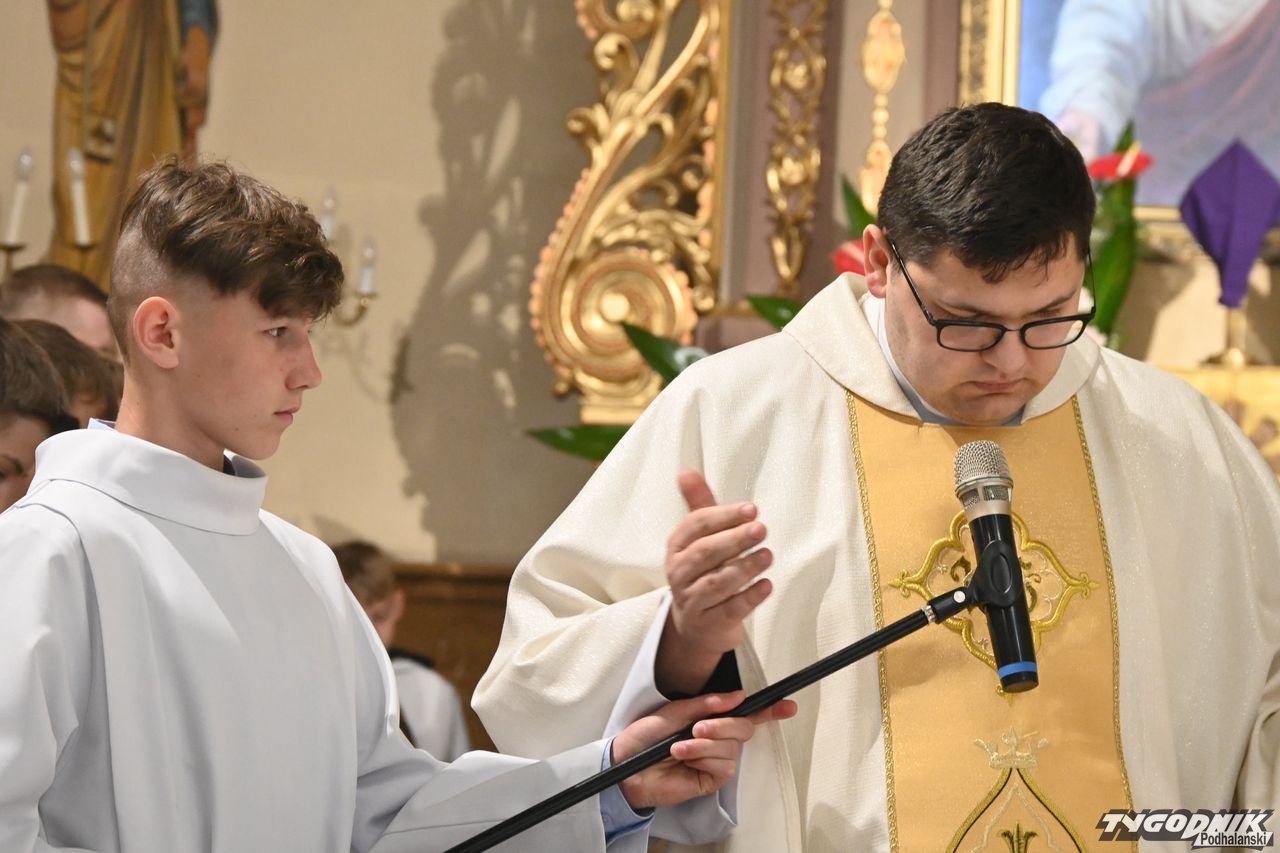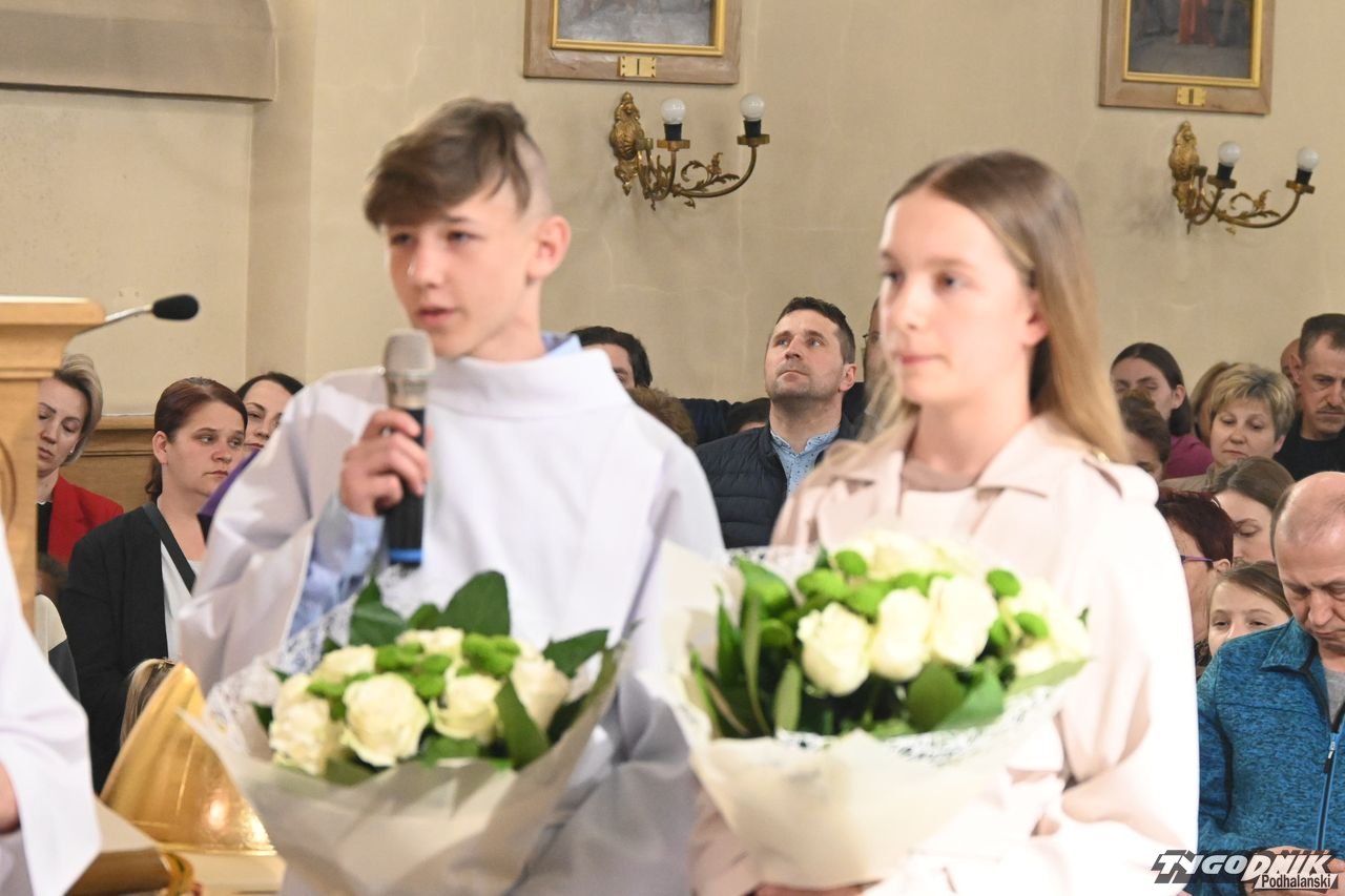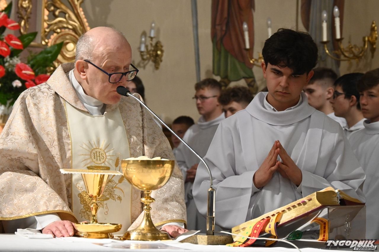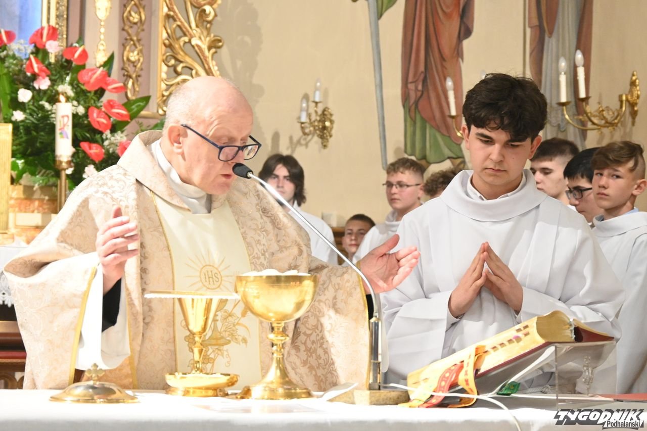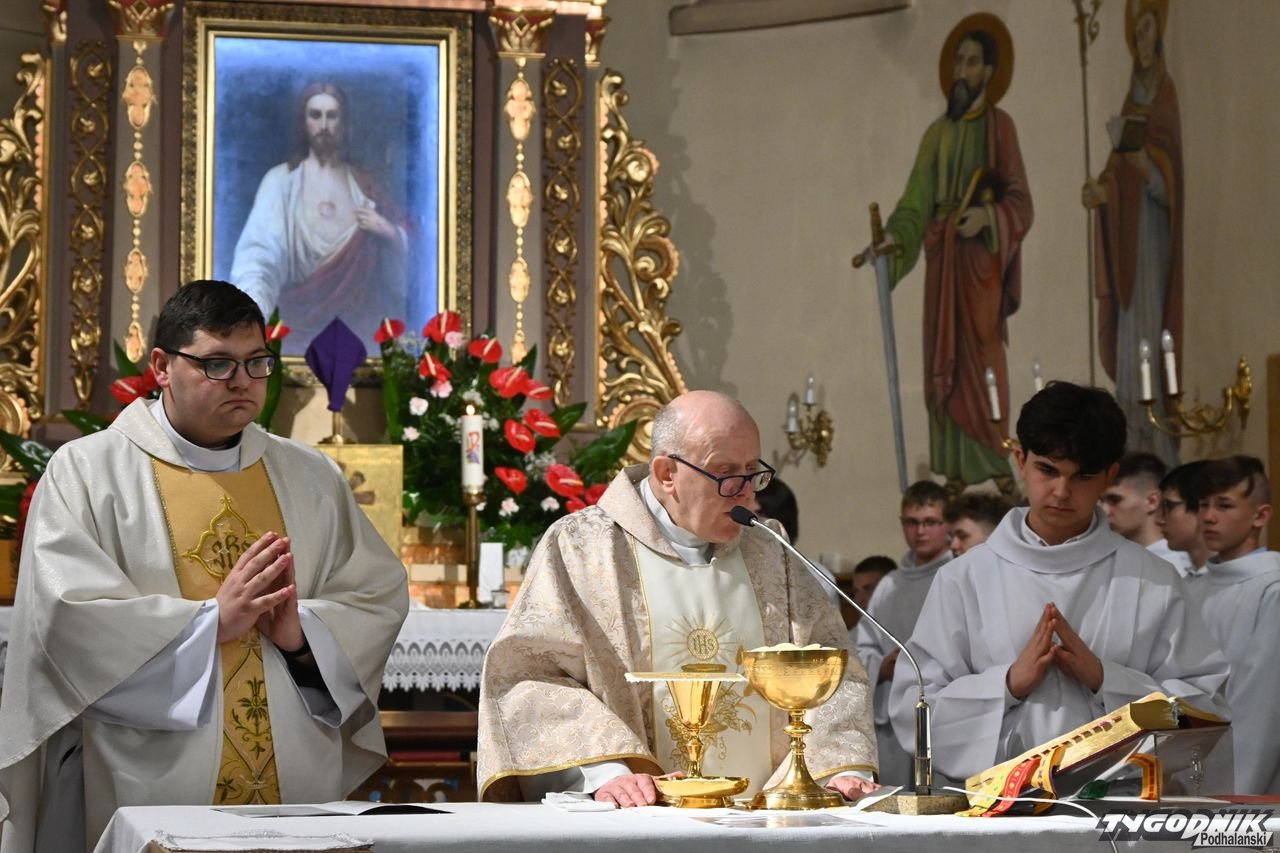 W Wielki Czwartek w każdej parafii kapłani sprawowali uroczyste Msze św., nie brakowało też dla nich życzeń od wiernych, tak było m.in. w Miętustwie. Wszak Wielki Czwartek to pamiątka ustanowienia Eucharystii.