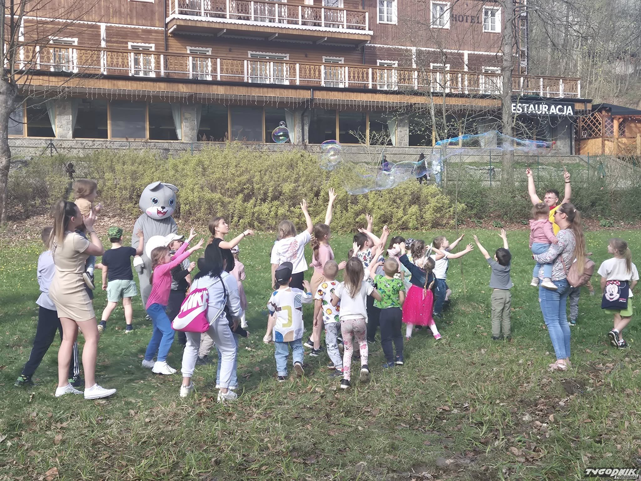Park Dolny w Szczawnicy zamienił się w prawdziwą krainę wielkanocnej zabawy. Dzieci, a nawet ich rodzice wspólnie uczestniczyli w poszukiwaniach zajączka.