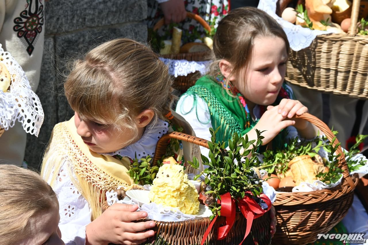 Dziewczynki z Białego Dunajca: 11-letnia Marysia Stachowiec z 6-letnią siostrą Anią do kosołecki włożyły pisanki z parzenicami. Nie zabrakło w ich święconce oczywiście swojskich produktów, m.in. oscypków, moskoli, wykrowków (ziemniaków). - Przychodzę na ten konkurs od kilku lat, bardzo to lubię. Już wiele umiemy same zrobić, choć wciąż pomaga nam mama - komentowała Marysia. Niektórzy młodzi górale święcone umieścili w bardzo starych koszykach, wśród nich był nawet jeden z 1945 r.