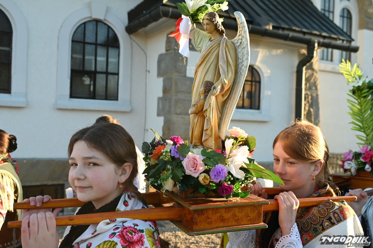 Podczas procesji rezurekcyjnej monstrancję z Najświętszym Sakramentem niósł ks. proboszcz Janusz Rzepa w asyście górali, kapeli regionalnej, parafianek ze świecami i wieloma wiernymi z miejscowości tworzących wspólnotę w Miętustwie oraz gośćmi. Byli też przedstawiciele wszystkich jednostek OSP i Związku Podhalan z pocztami sztandarowymi. Liturgię uświetnił zespół Jedla, którą współtworzą góralki należące do parafii w Miętustwie.