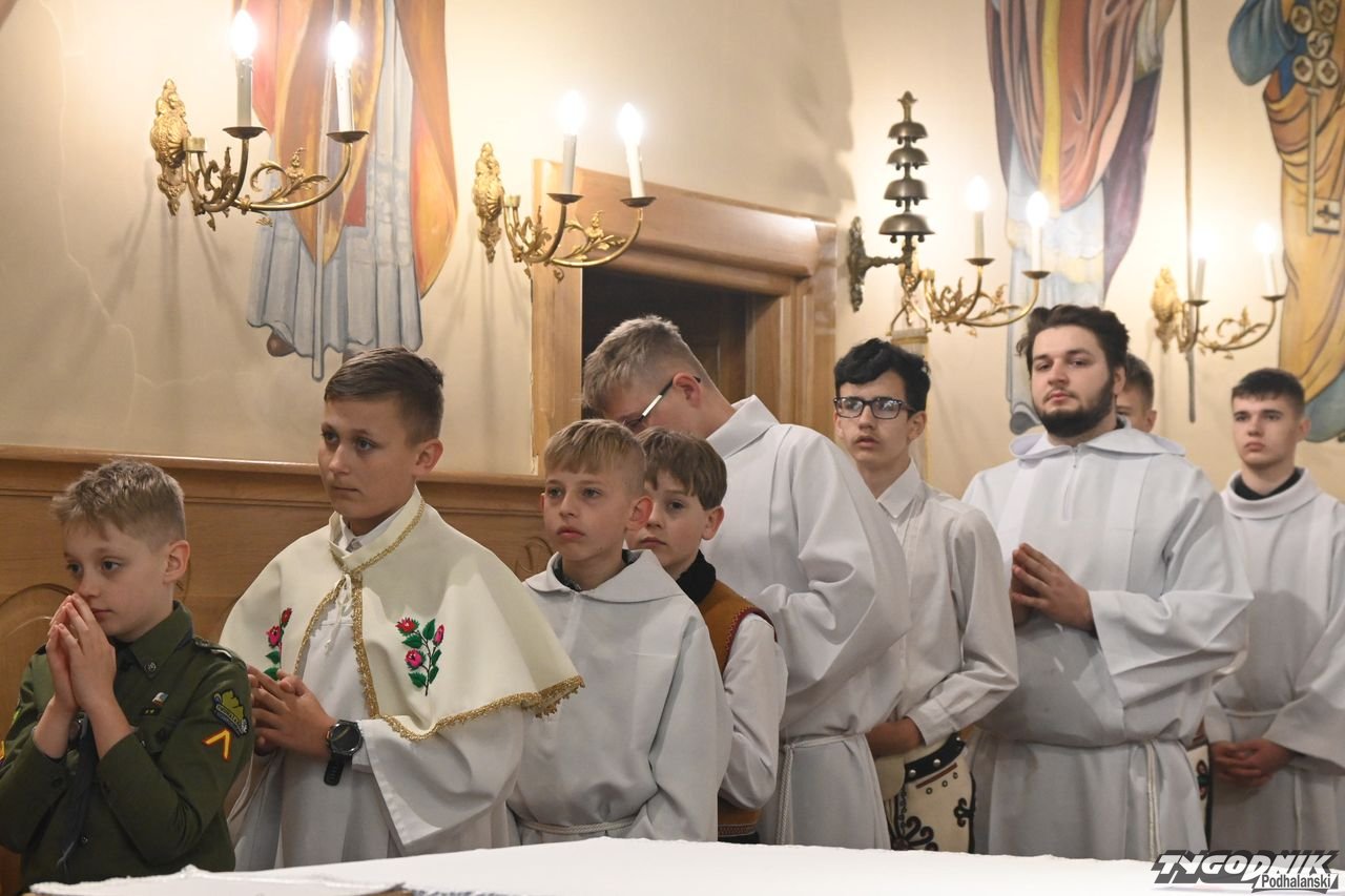 Na rezurekcję przybyła też drużyna harcerska, a przedstawiciele parafii nieśli różne feretrony, m.in. z postacią św. Jana Pawła II.