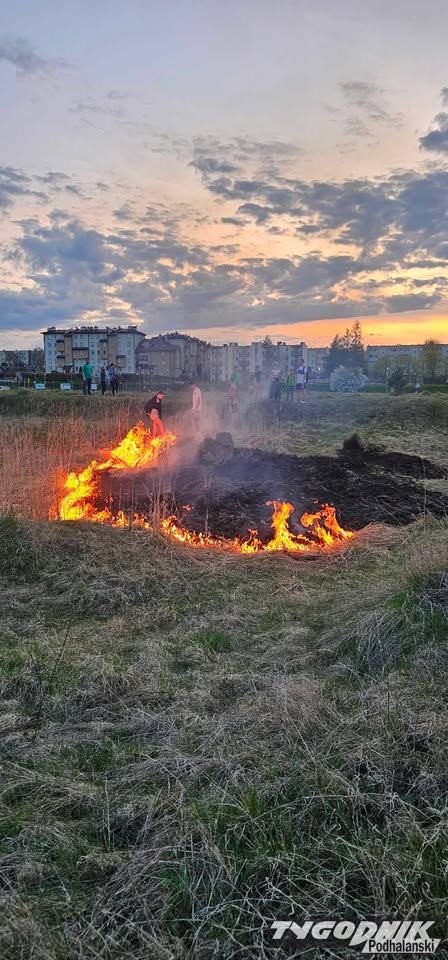 Podpalone trawy nad Dunajcem w Nowym Targu