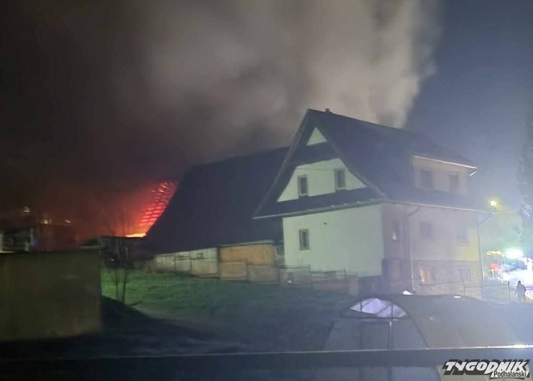 Ogień pojawił się po godz. 3 w nocy. Zapalił się budynek gospodarczy. Na miejsce przyjechali strażacy z Zakopanego, Nowego Bystrego, Suchego, Zębu, Dzianisza Dolnegi, Dzianisza Górnego, Witowa, Poronina, Kościeliska. Pożar udało się opanować. Fot. Małopolska Alarmowo