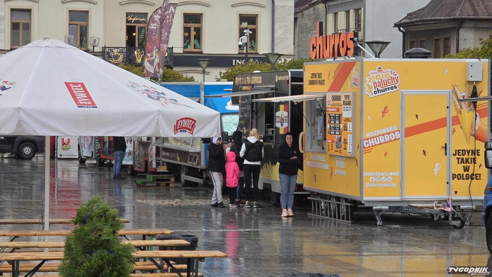 Piątek w Nowym Targu przywitał nas deszczem. Mimo kiepskiej pogody na Rynku czekają na nas przysmaki z różnych zakątków świata.