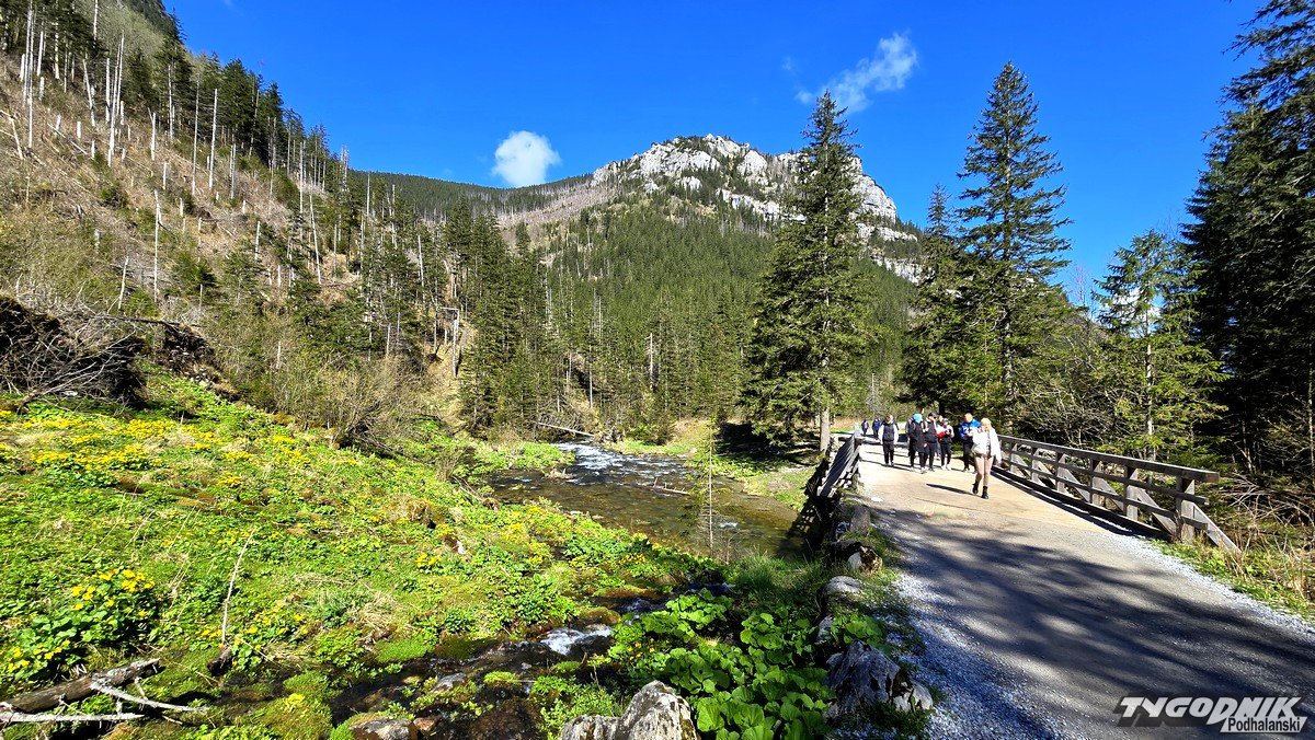 Wcale nie trzeba było wstać bardzo wcześnie, bo w Kościeliskiej jeszcze o godz. 8 nie było wielu turystów. Przed godz. 9 na Hali Ornak przed schroniskiem nie było nikogo. Nad Smreczyńskim Stawem spotkaliśmy dwie osoby. Widoki dziś są przepiękne. Słychać szum wezbranych po wczorajszych opadach deszczu strumieni i śpiew ptaków. Jest trochę chłodno, ale widoki wynagrodzą trudy nawet tym, którzy nie lubią zimna. Najbliższe dni mają być słoneczne, a od poniedziałku zdecydowanie cieplejsze.