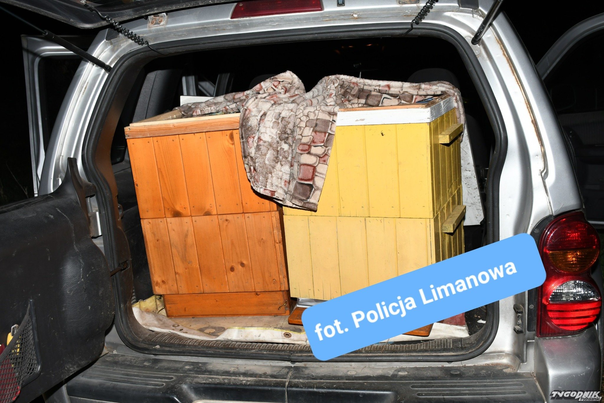Mężczyźni włamali się do pasieki, wykradli dwa ule o łącznej wartości około 4000 zł i przenieśli je do zaparkowanego nieopodal pojazdu samochodu marki Jeep. Obaj zostali aresztowani i trafili do policyjnego aresztu, a ich auto zabezpieczono na policyjnym parkingu.