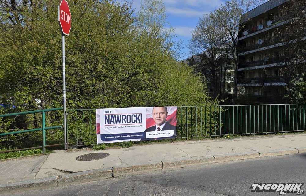 Wczoraj na moście na ul. Gimnazjalnej pojawił się baner kandydata na prezydenta PiS Karola Nawrockiego.