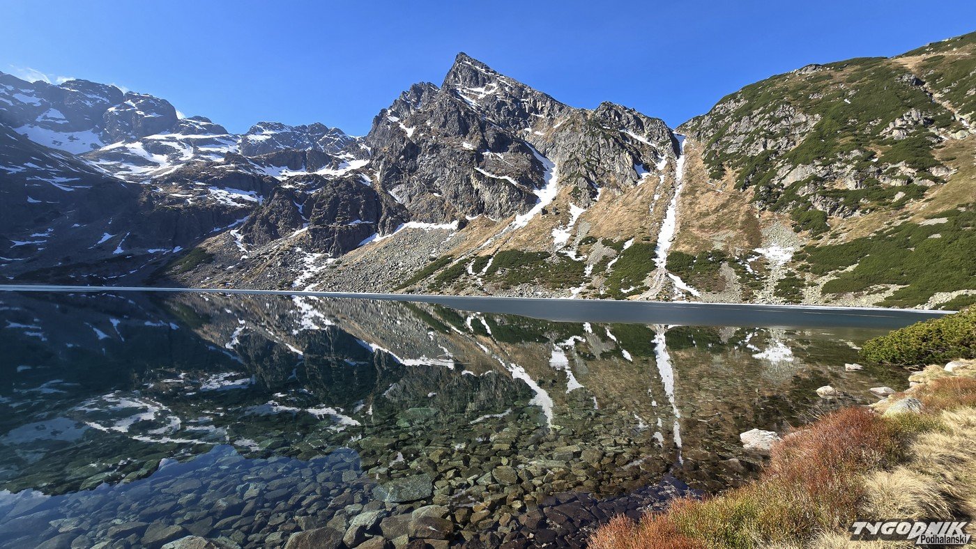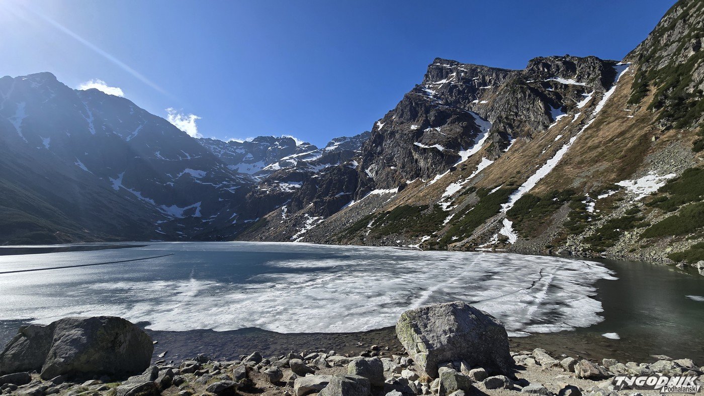 Dziś po godz. 8 rano odwiedziliśmy Czarny Staw Gąsienicowy. To bezsprzecznie jedno z najpiękniejszych tatrzańskich jezior. O tej porze nie było nad stawem jeszcze tłumu turystów. Widoki przepiękne. Na dużej części tafli jeziora zalega jeszcze cienka warstwa lodu. Do stawu dotrzemy już bez wchodzenia na płaty śniegu, ale powyżej takich miejsc jest jeszcze bardzo dużo.