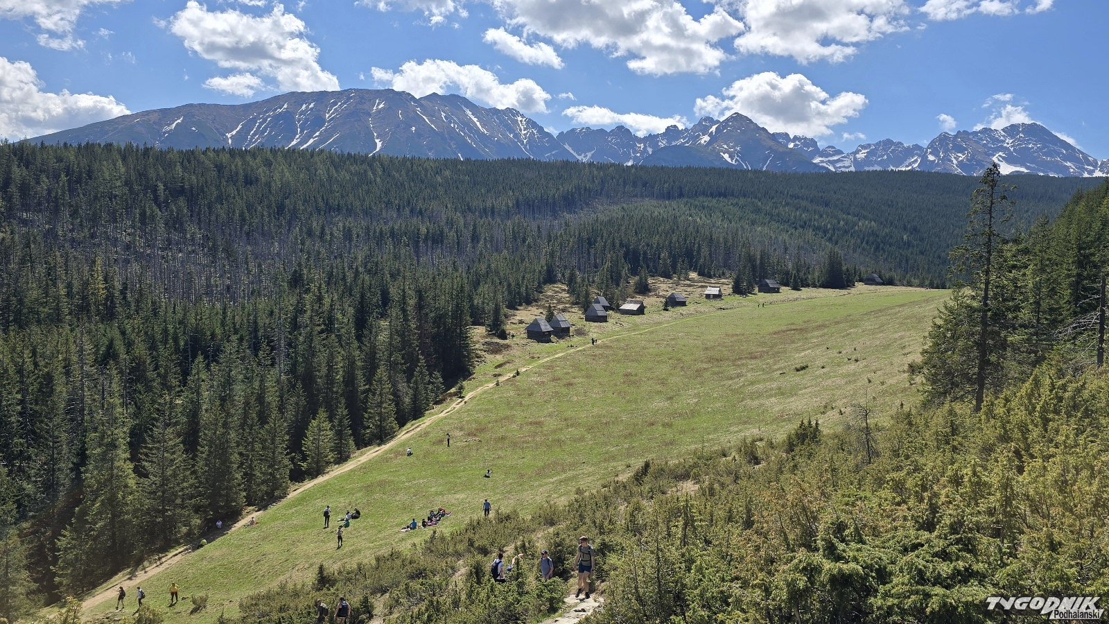 Słońce świeci dziś nad Tatrami od rana. Temperatura przekroczyła już 20 st. C. Piękna pogoda i majowy weekend sprawiły, że na tatrzańskie szlaki wyruszyły tłumy turystów. Wielu z nich poszła w Tatry dopiero po godz. 10. Wcześniej na Polanie pod Kopieńcem było jeszcze pusto.
