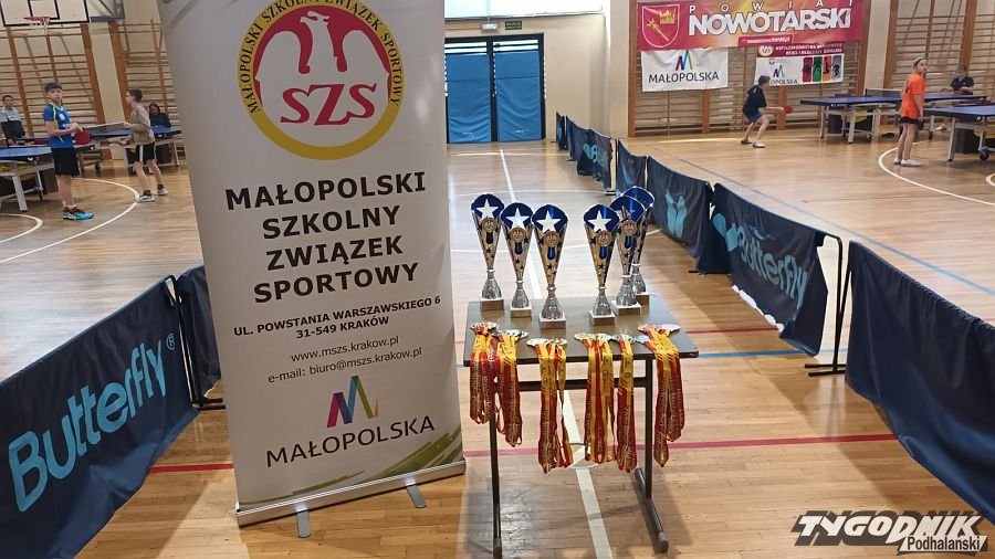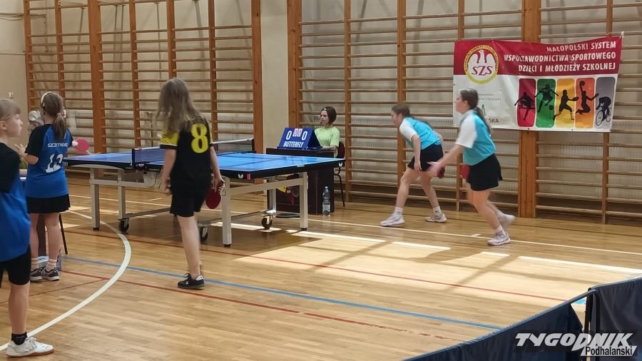 W poniedziałek 28.04 w hali Gorce w Nowym Targu odbyły się zawody w ramach systemu współzawodnictwa sportowego dzieci i młodzieży Szkolnego Związku Sportowego - Mistrzostwa Małopolski w Igrzyskach Dzieci w drużynowym tenisie stołowym.