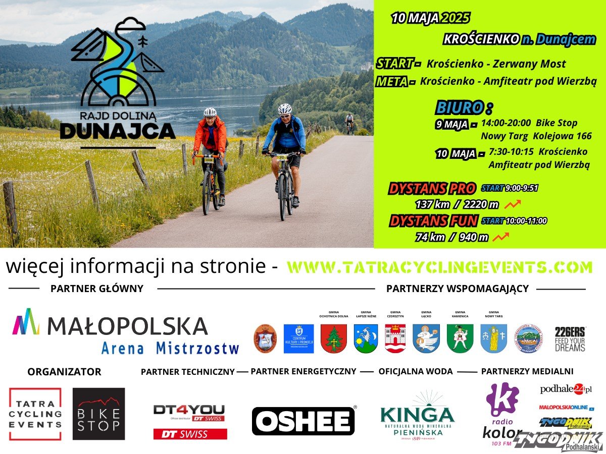 W najbliższą sobotę 10 maja w Krościenku nad Dunajcem odbędzie się VIII edycja Rajdu Doliną Dunajca jednego z najpopularniejszych rajdów rowerowych, na starcie którego stanie ponad 500 rowerzystów.