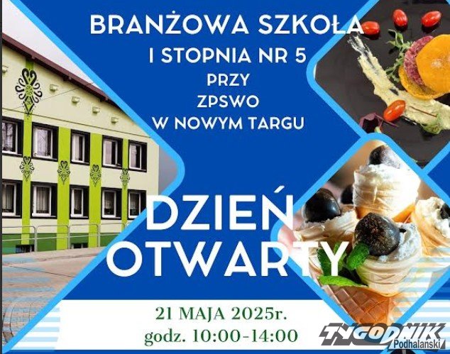 Branżowa Szkoła I stopnia nr 5 przy Zespole Placówek Szkolno - Wychowawczo Opiekuńczych w Nowym Targu, ul. Jana Pawła II 85 serdecznie zaprasza uczniów klas ósmych szkół podstawowych oraz ich rodziców na Dzień Otwarty, który odbędzie się 21 maja 2025 r. w godzinach 10:00 -14.00.