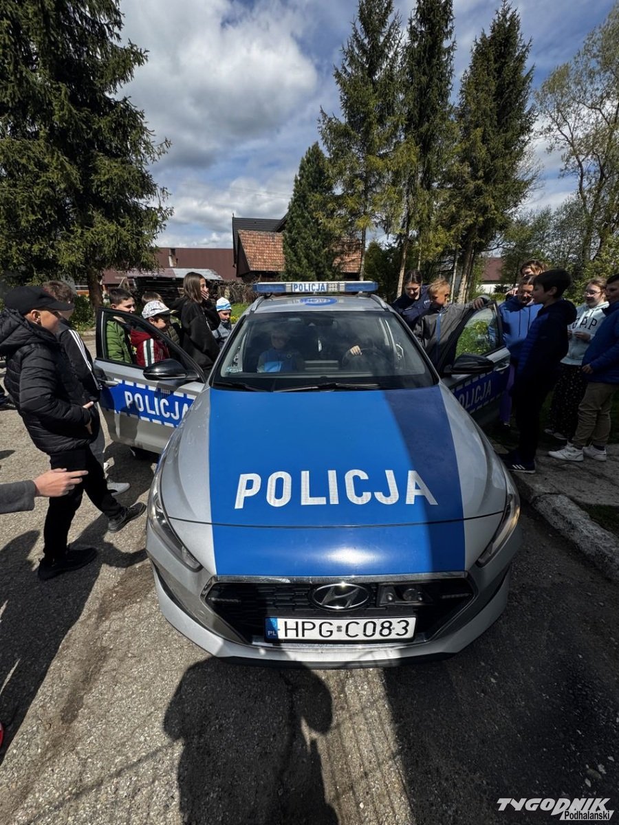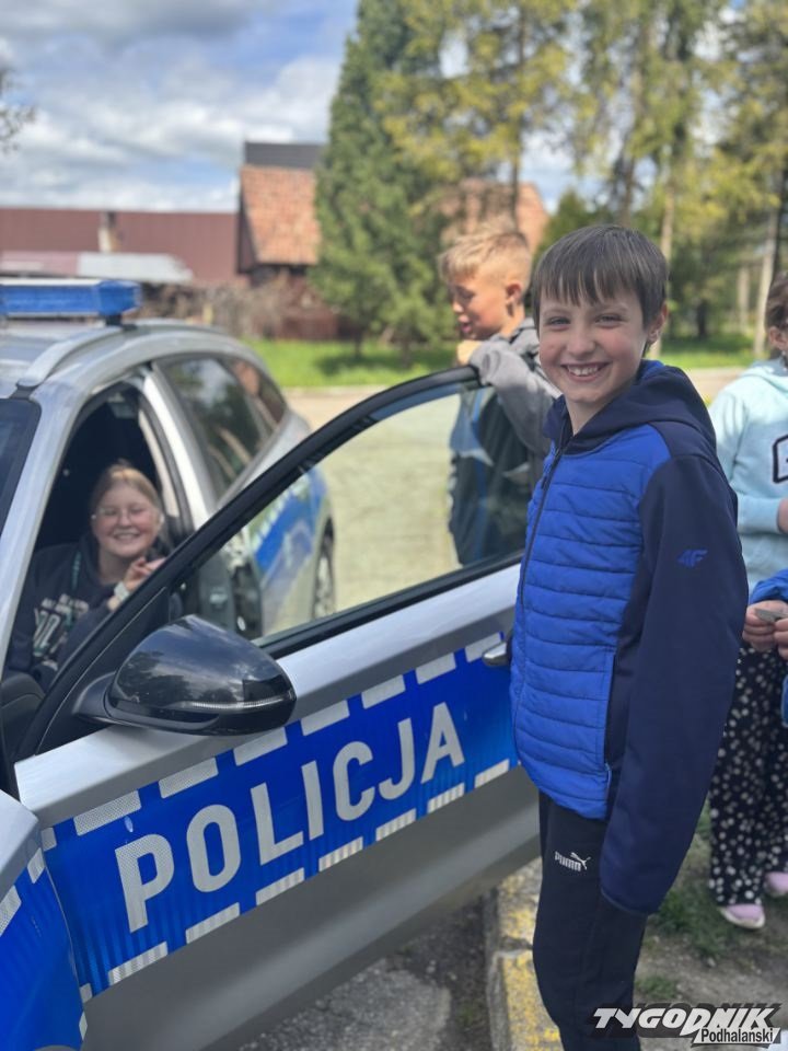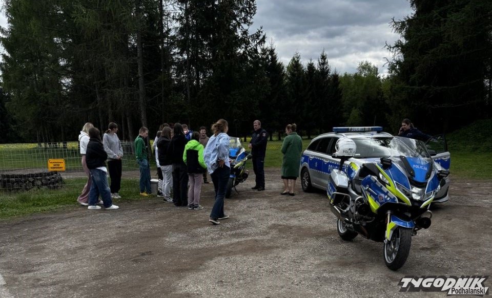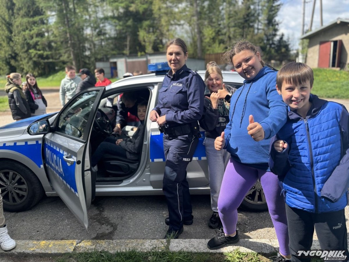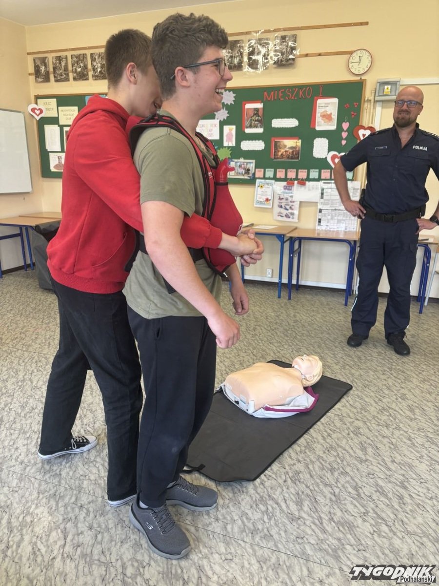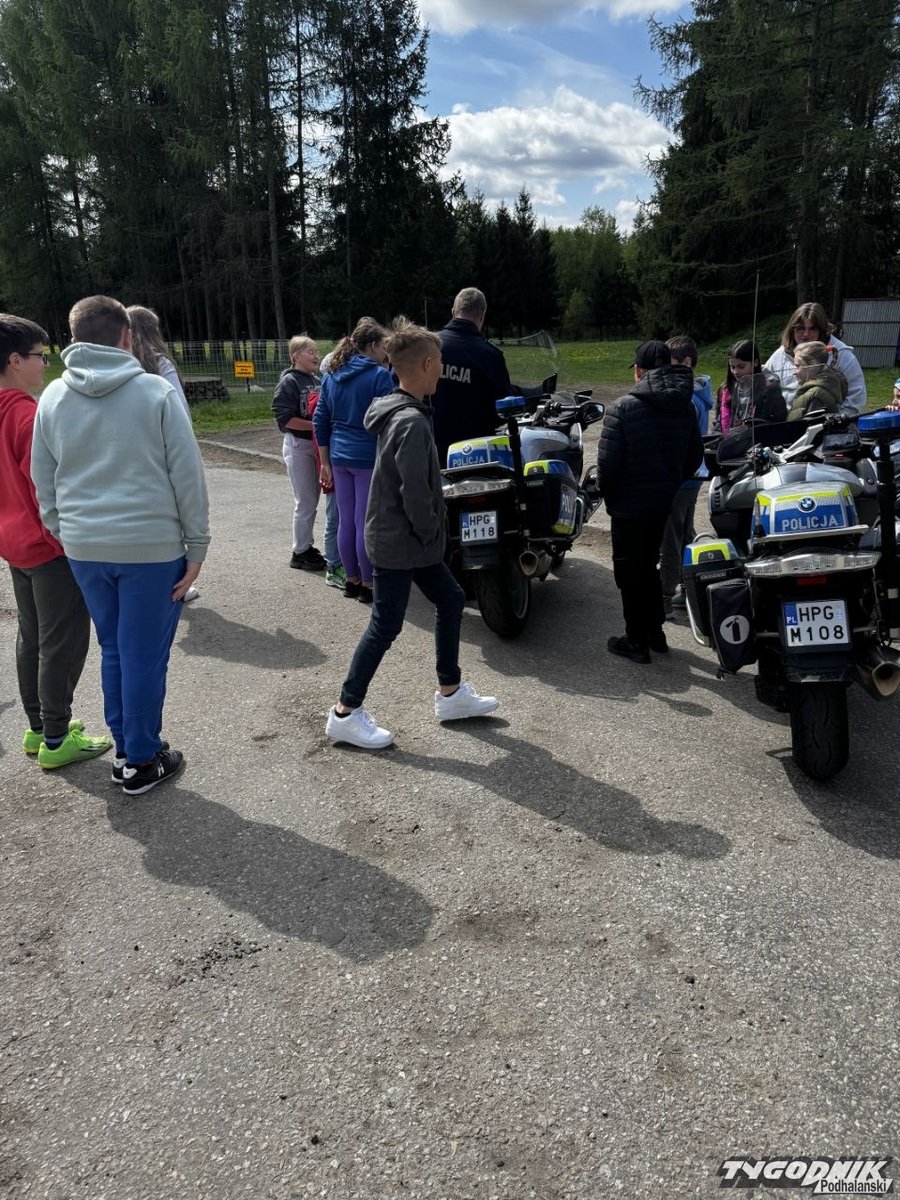 Mundurowi przeprowadzili lekcję, nauczali jak nieść pierwszą pomoc i bezpiecznie zachowywać się na drodze.