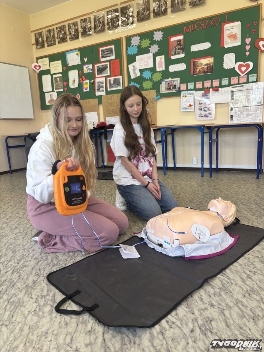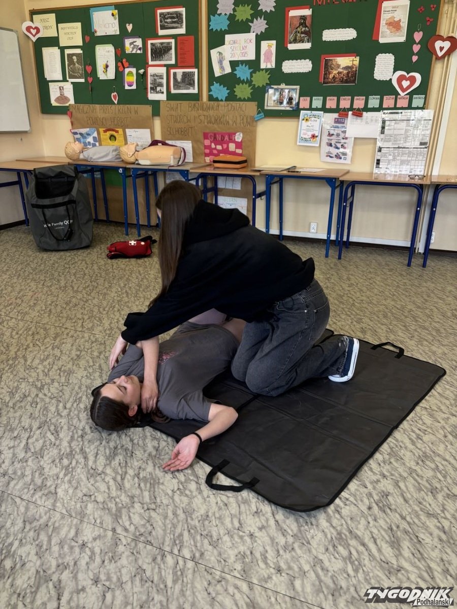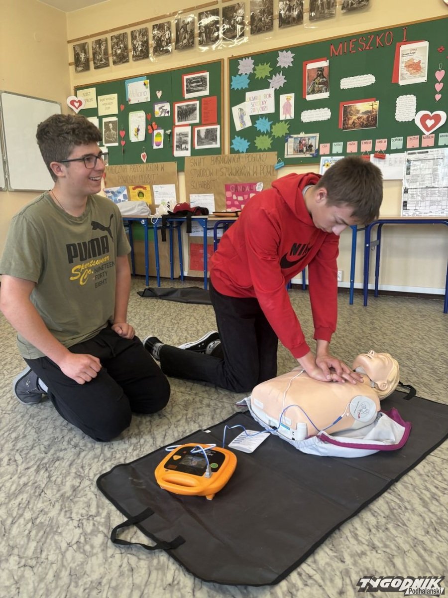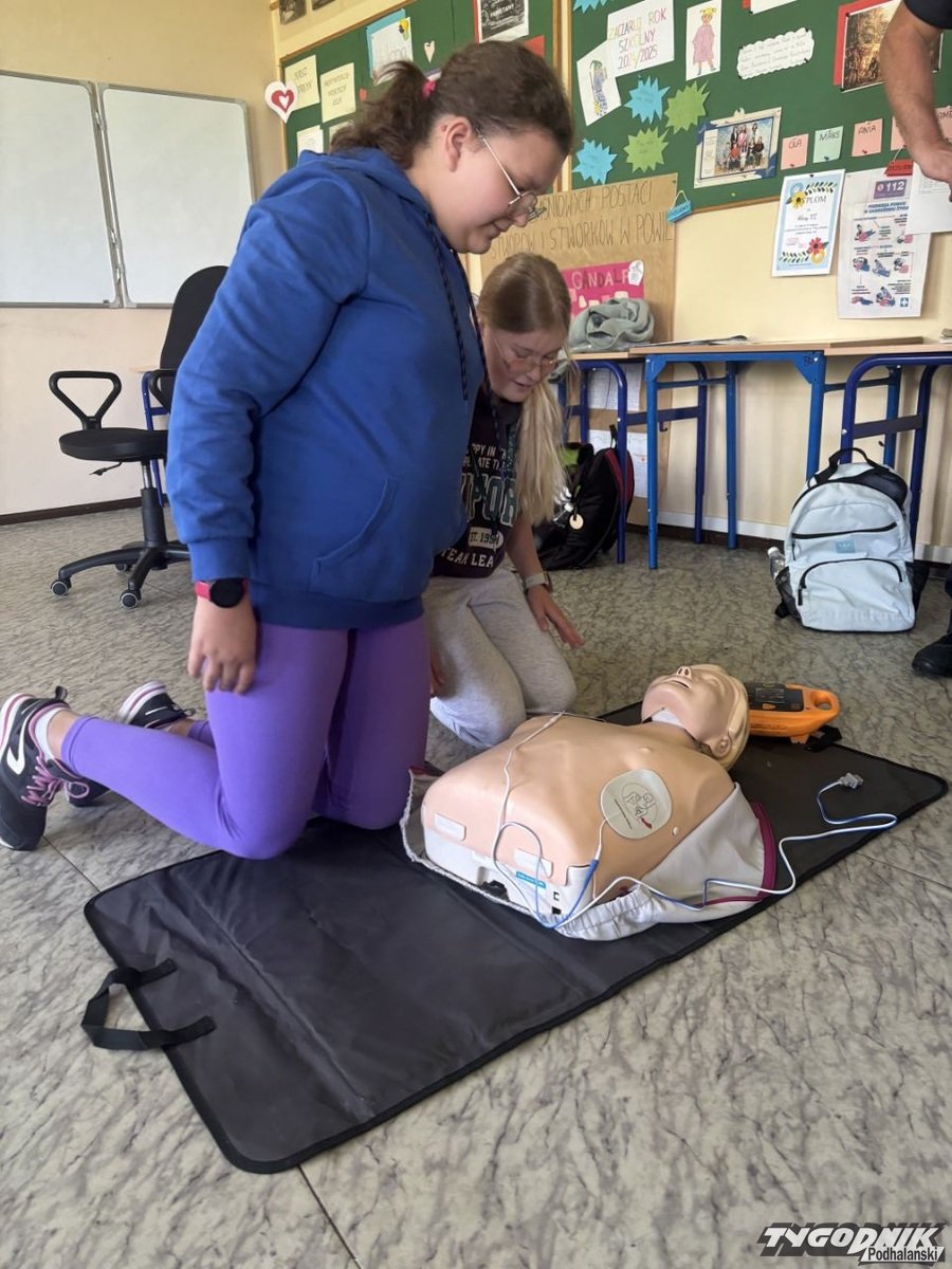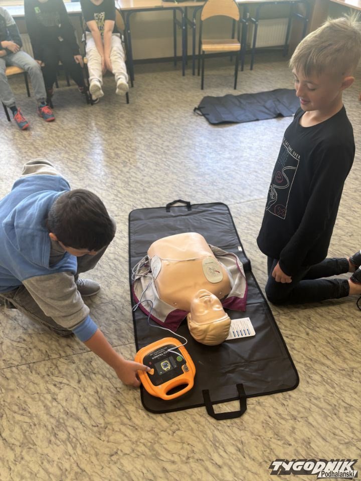 Mundurowi przeprowadzili lekcję, nauczali jak nieść pierwszą pomoc i bezpiecznie zachowywać się na drodze.