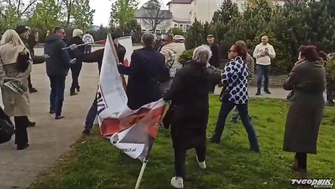 Nie "szarpanina" tylko napaść zwolenników Trzaskowskiego na zwolenników Nawrockiego.