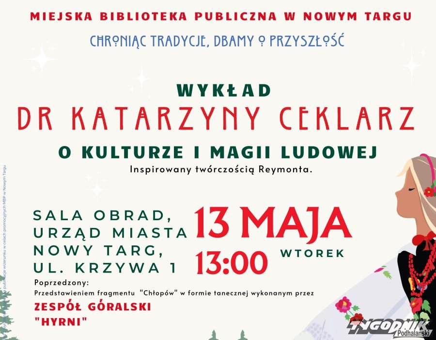 Miejska Biblioteka Publiczna w Nowym Targu zaprasza we wtorek 13.05 o godz. 13 na wyjątkowe wydarzenie kulturalne, które odbędzie się w sali obrad Urzędu Miasta Nowy Targ przy ul. Krzywej 1.