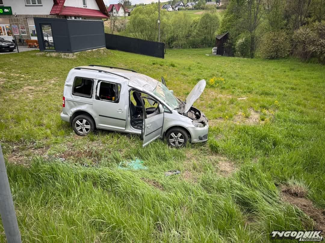 Dachowanie samochodu osobowego na ul. Krakowskiej w Jabłonce