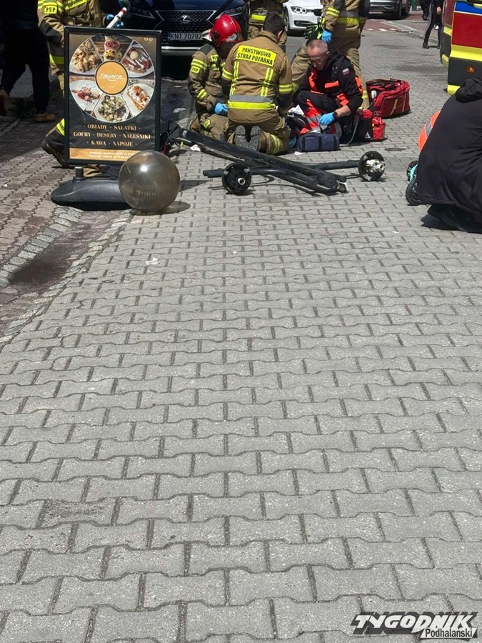 W Nowym Targu lampa uliczna spadła na przechodniów.