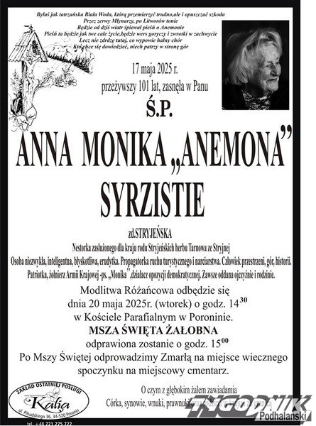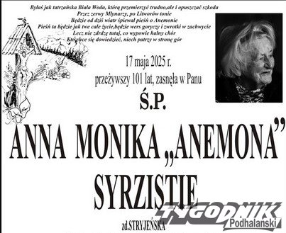 Zmarła Anemona Stryjeńska - Syrziste. Miała 101 lat.