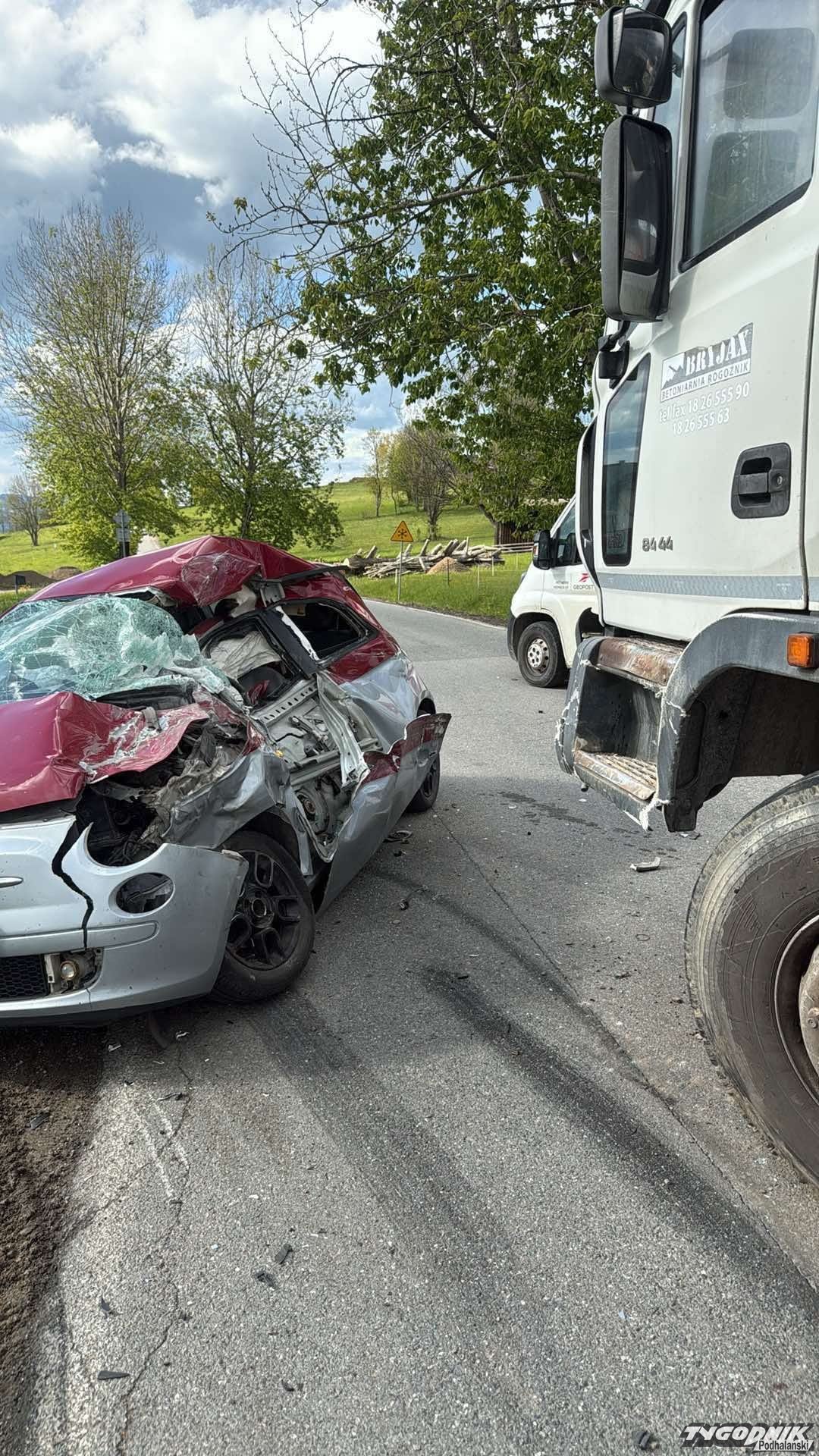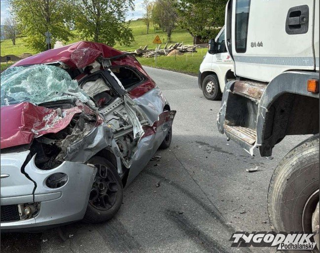 Zderzenie osobówki z ciężarówką w Czerwiennem