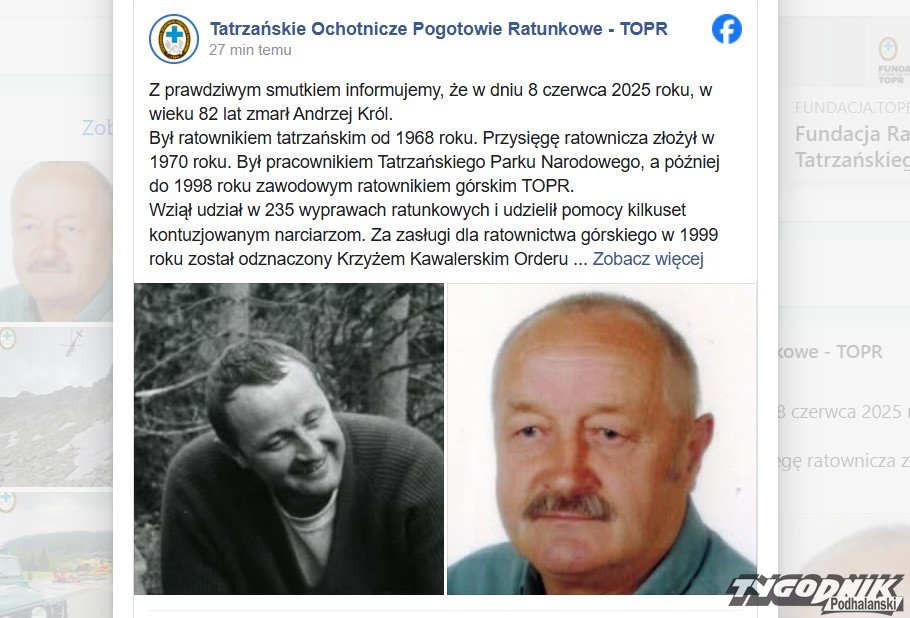 O śmierci Andrzeja Króla informują w mediach społecznościowych ratownicy TOPR: