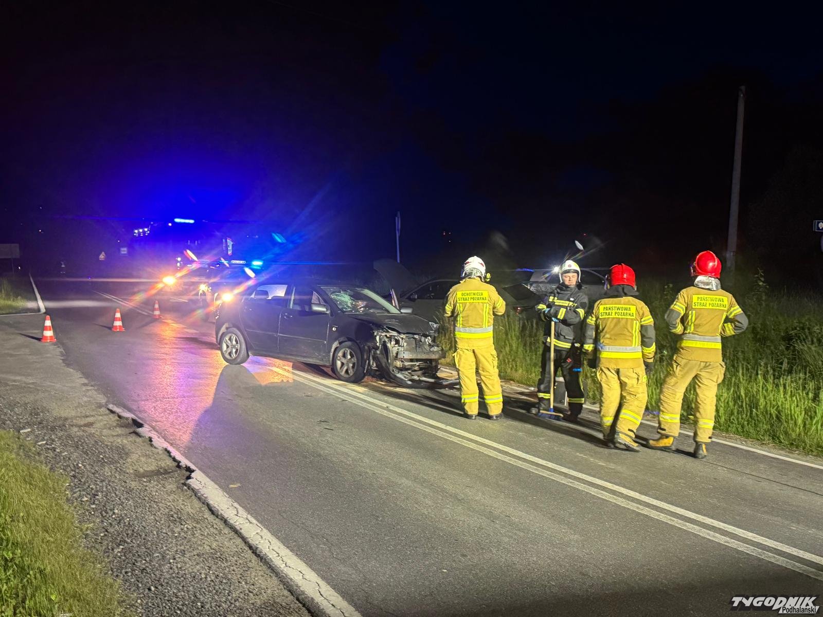 Wypadek zdarzył się około 22 w rejonie skrzyżowania z drogą prowadzącą do Działu, przy wyjeździe z Pieniążkowic w kierunku Czarnego Dunajca. Na miejscu pracują strażacy, policja. Jest też karetka pogotowia. Z wstępnych informacji wynika, że nikt w wypadku nie odniósł ciężkich obrażeń. Droga wojewódzka jest zablokowana.