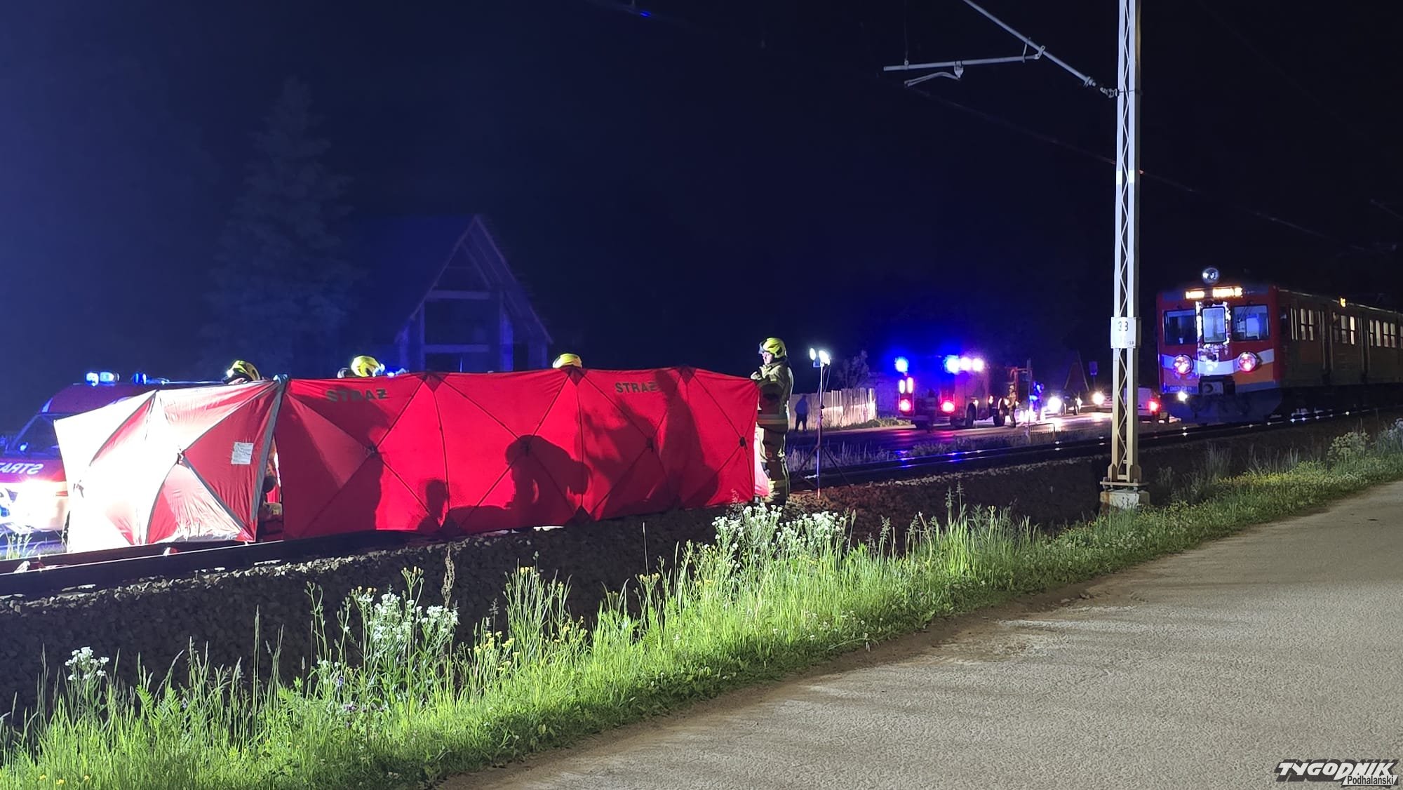 Pociąg relacji Zakopane Rabka w poniedziałek po godz. 22:30 potrącił dwie osoby, kobietę i mężczyznę. Kobieta została bardzo ciężko ranna i trafiła do szpitala, mężczyzna zginął na miejscu. O wypadku pisaliśmy tu: [24tp.pl] Pociąg potrącił mężczyznę i kobietę. Jedna osoba nie żyje (WIDEO)