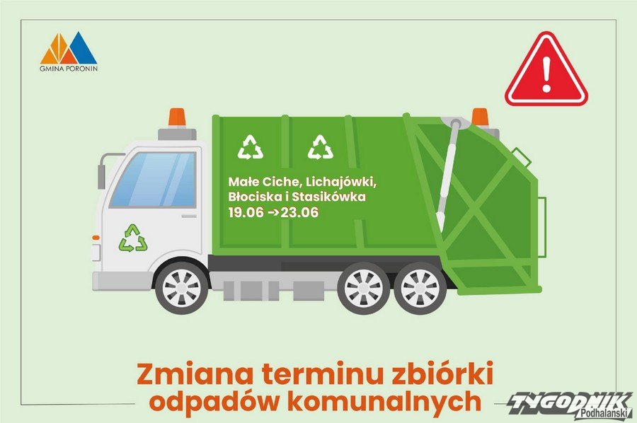 Gmina Poronin informuje o zmianie terminu odbioru odpadów