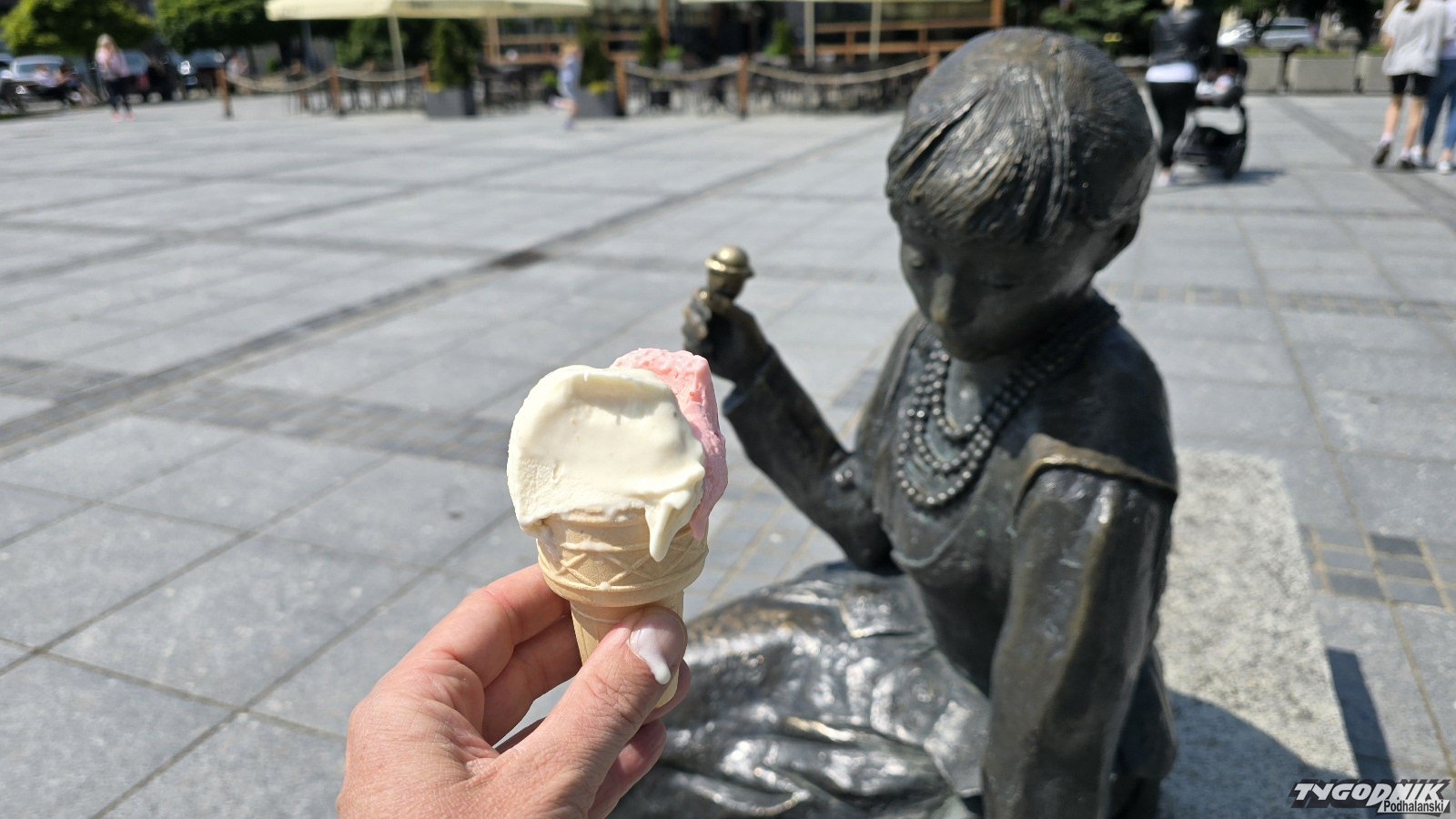 Nowy Targ słynie z pysznych lodów, do których w ciepłe dni ustawiają się kolejki. Dziś spróbowaliśmy jak smakują razem z naszą góralką Hanką, której rzeźbę znajdziecie na Rynku.
