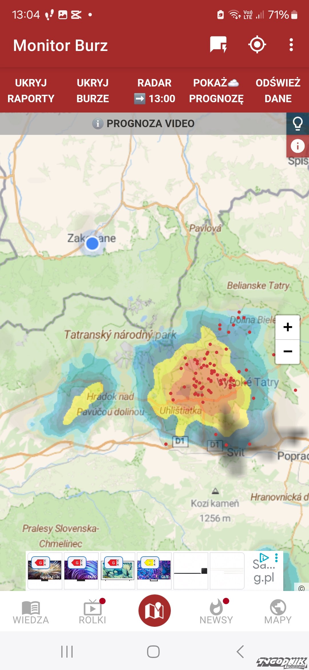 Po godz. 12:30 komórka burzowa zaczęła rozwijać się w rejonie Gerlacha w Tatrach Słowackich. Tam grzmi i pada ulewny deszcz. Przypomnijmy, że od godz. 13 do 19 w powiecie tatrzańskim obowiązują ostrzeżenia trzeciego stopnia przed burzami dla powiatu tatrzańskiego. Jeśli jesteście jeszcze w górach powinniście natychmiast schodzić w dół!